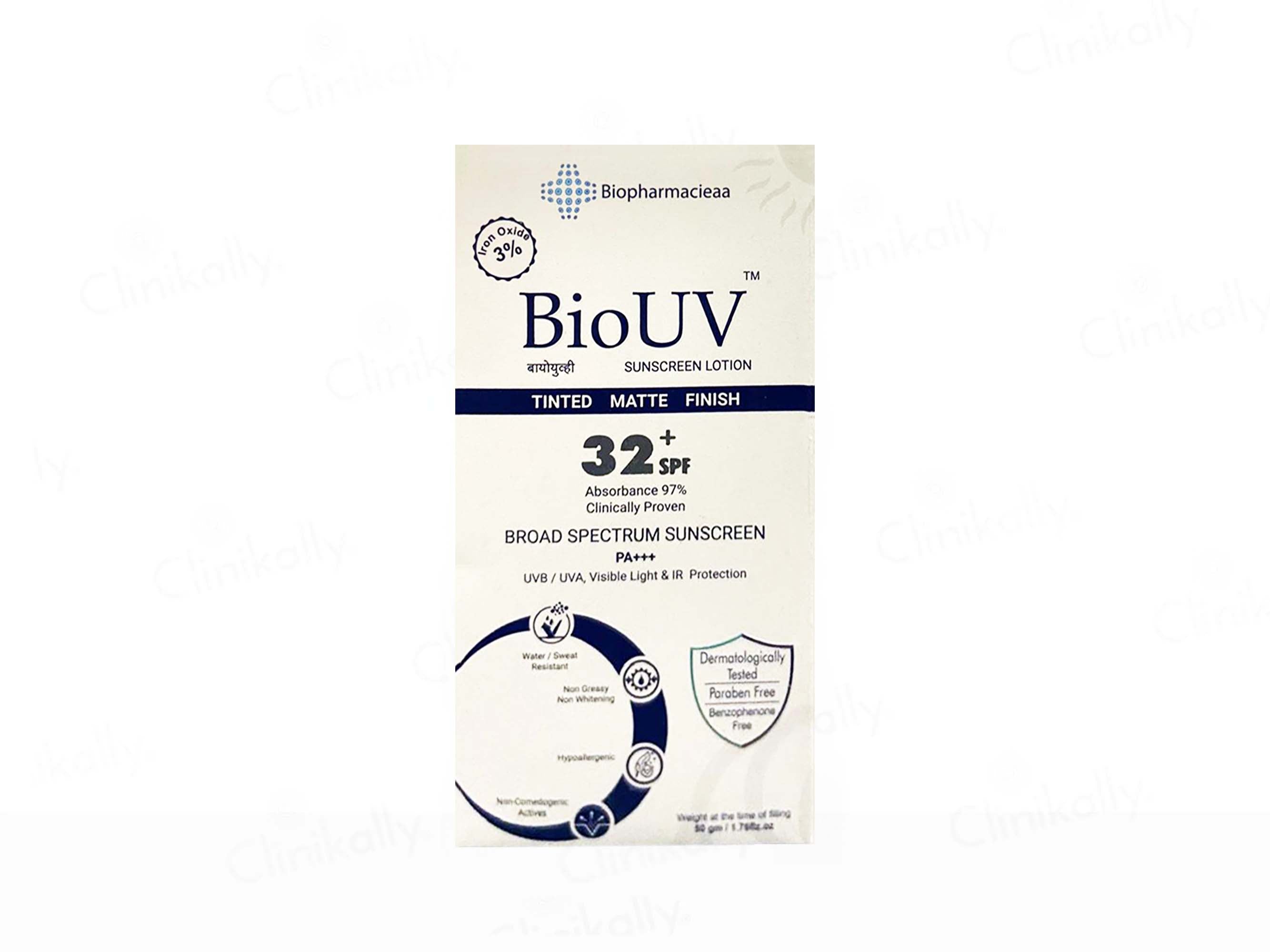 BioUV Tinted Matte Sunscreen Lotion provides broad-spectrum protection with SPF 32+ PA+++ to shield against UVB, UVA, visi...