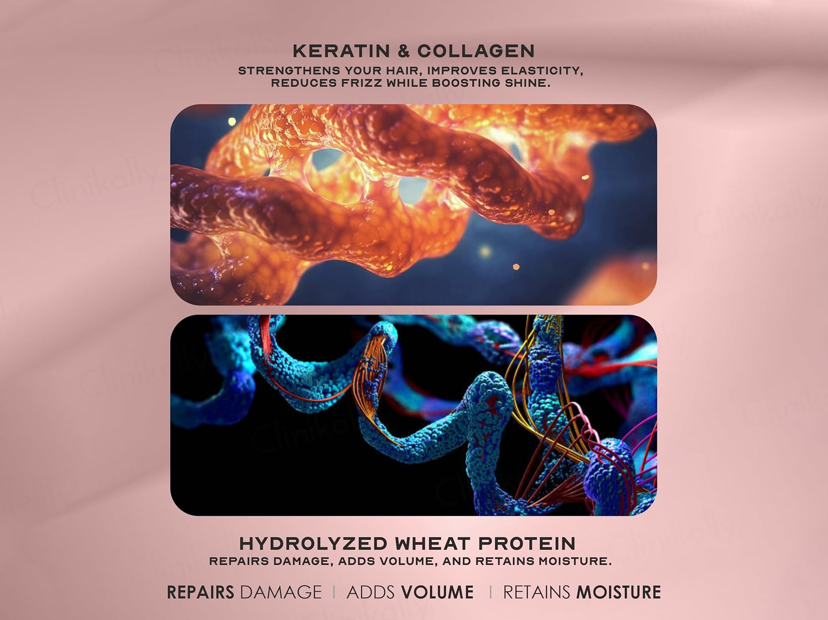 3Tenx Hydrify Gloss Mist For All Hair Types is a lightweight hair care product designed to deliver instant glass-like shine and a radiant finish. Enriched with Raspberry Seed Oil, Jojoba Oil, Keratin, Collagen, and Hydrolysed Proteins, this clean-conscious mist protects against heat up to 232°C, minimizes styling damage, and shields hair from UV rays. It helps maintain vibrant color, tames frizz, fights humidity for sleek, polished hair, and offers photoprotection without weighing hair down, with results noticeable after one use.