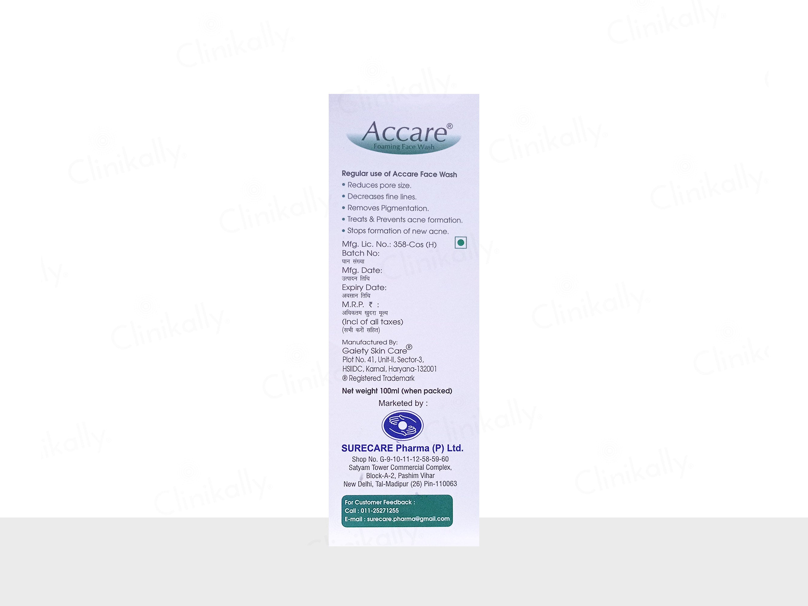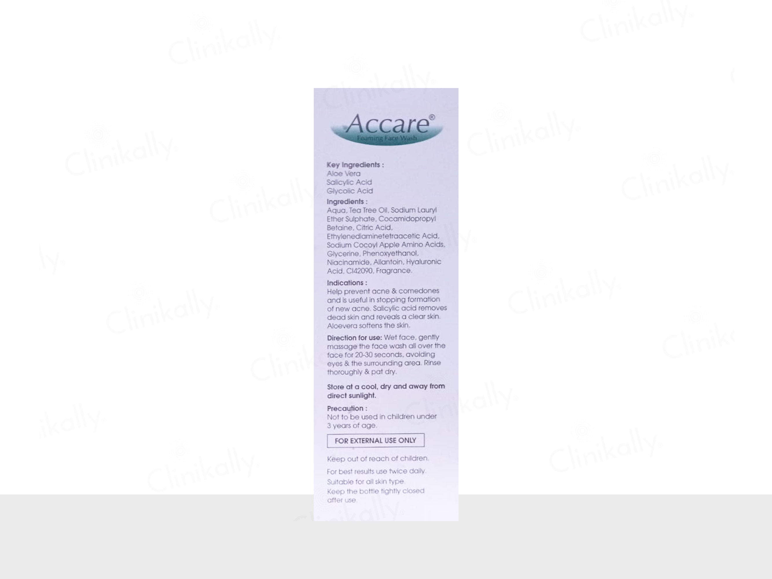 Accare Foaming Face Wash is a gentle yet effective cleanser formulated to combat acne and blemishes, enriched with Salicylic Acid, Tea Tree Oil, and Aloe Vera.