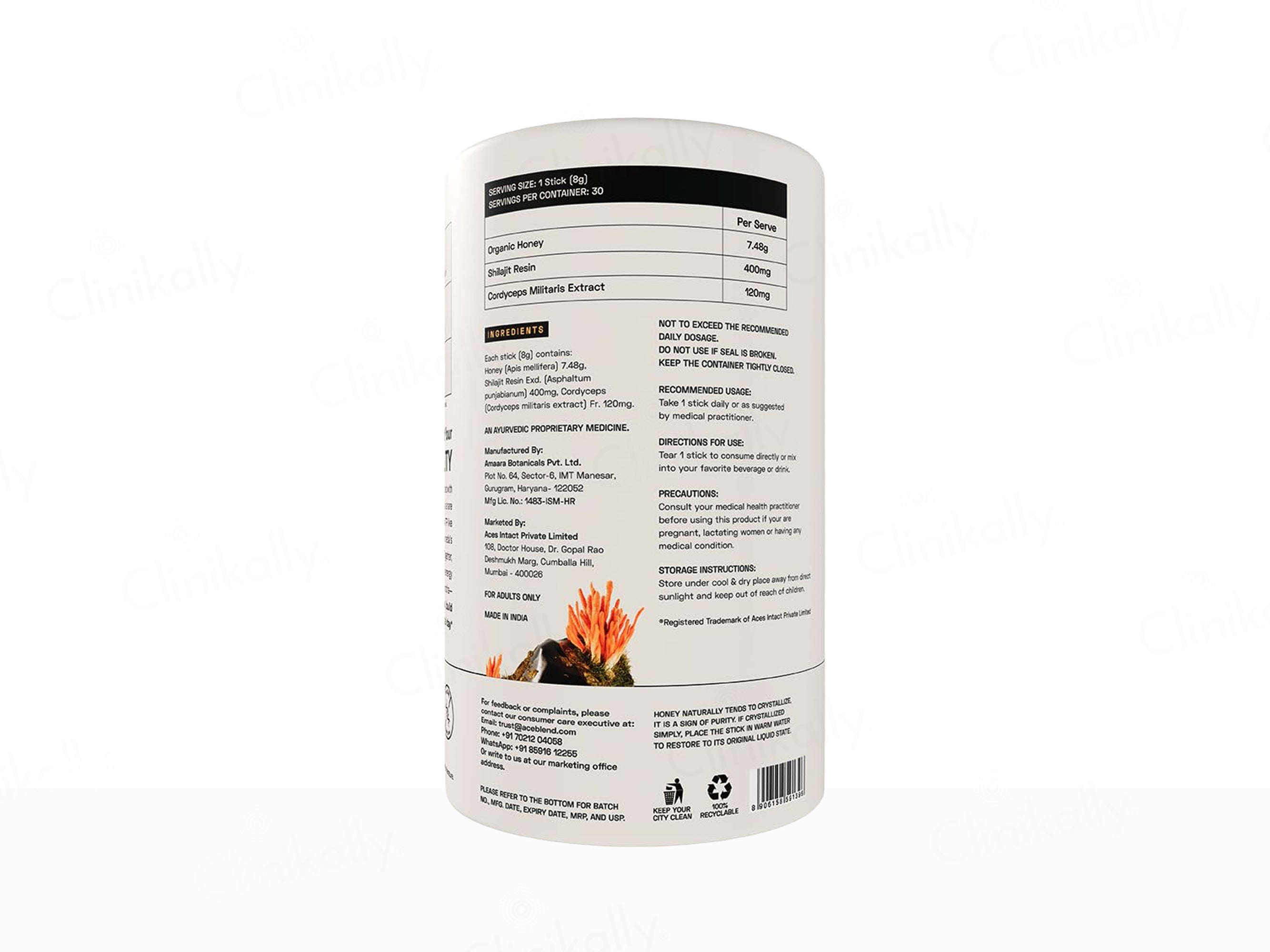 Ace Blend Trublk Pure Shilajit Resin Sticks is a precisely dosed vitality blend crafted with premium TRUBLK™ Shilajit Resin, Organic Honey, and Cordyceps Militaris Extract to support energy, endurance, and hormonal balance, delivering over 75% fulvic acids along with 80+ trace minerals in a convenient pocket-sized stick format. Each 8 g stick combines 400 mg pure Shilajit Resin for cellular energy and hormone support, 120 mg Cordyceps Extract for enhanced physical stamina and vitality, and 7.48 g Organic Honey to improve nutrient absorption and bioavailability, making it ideal for daily use without mixing—just rip, squeeze, and consume anytime for natural revitalization.
