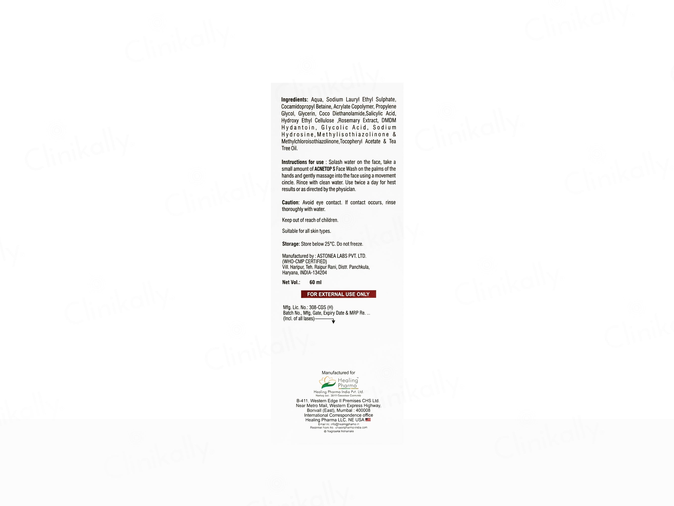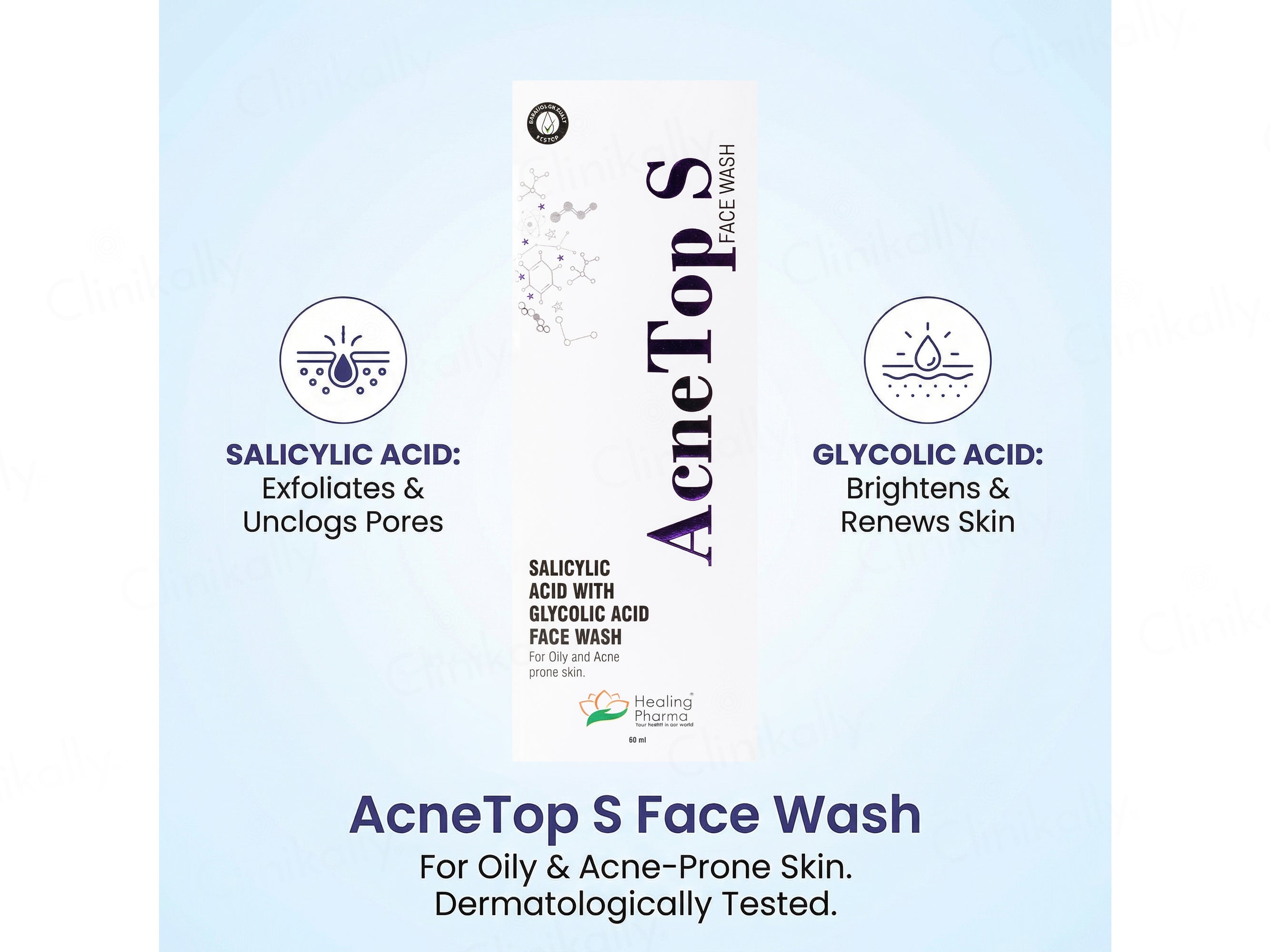 Acnetop S Face Wash is a dermatologically designed cleansing solution formulated for oily and acne-prone skin, combining exfoliating and pore-clearing actives to help remove excess oil, impurities, and dead skin buildup while supporting clearer and smoother skin texture, featuring Salicylic Acid and Glycolic Acid as key ingredients that work together to gently exfoliate, unclog pores, and reduce acne formation while improving overall skin clarity and freshness, making it suitable for daily cleansing for individuals dealing with oily and acne-prone skin concerns.
