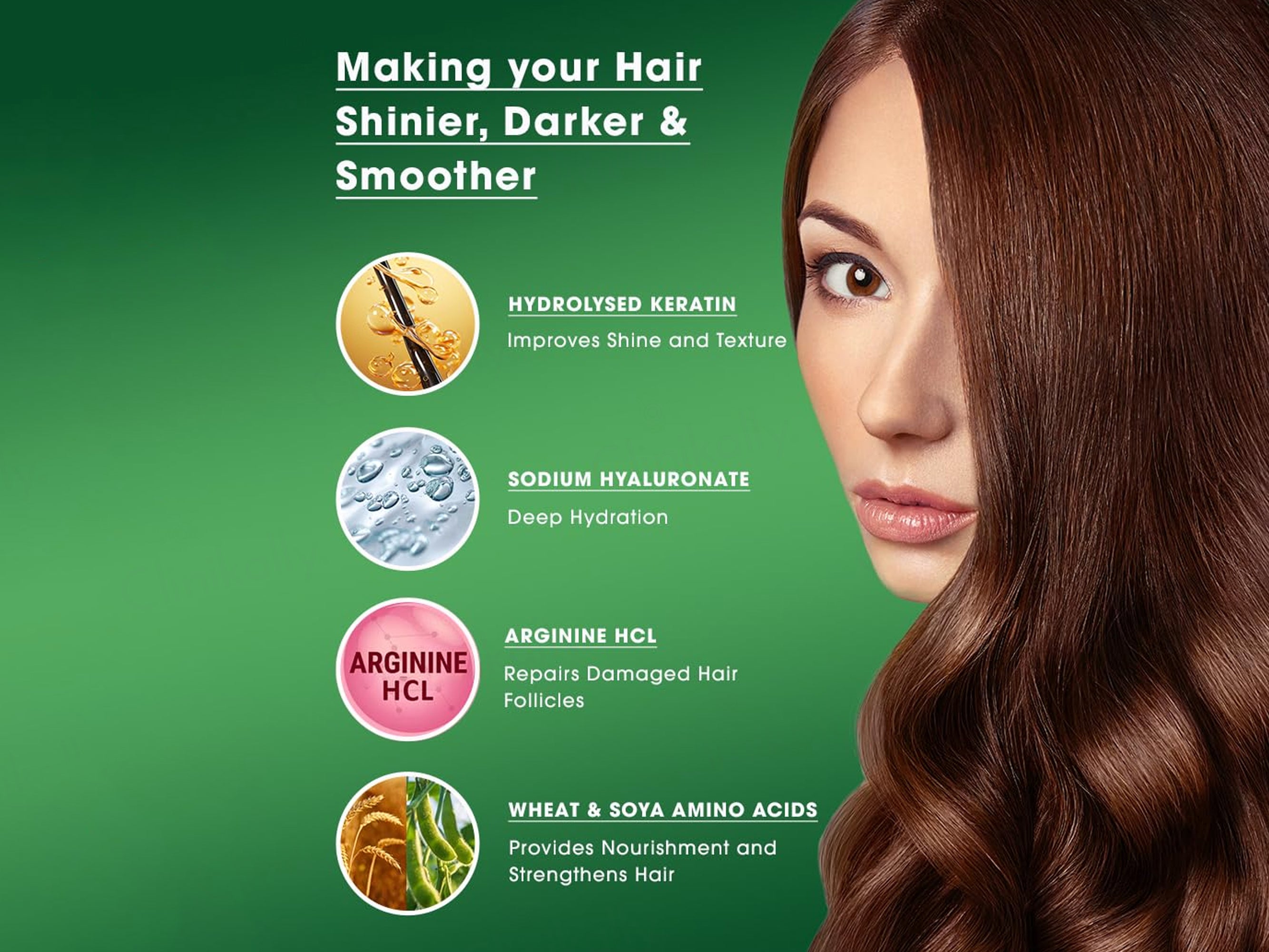 • Free from ammonia, PPD, resorcinol, and parabens.