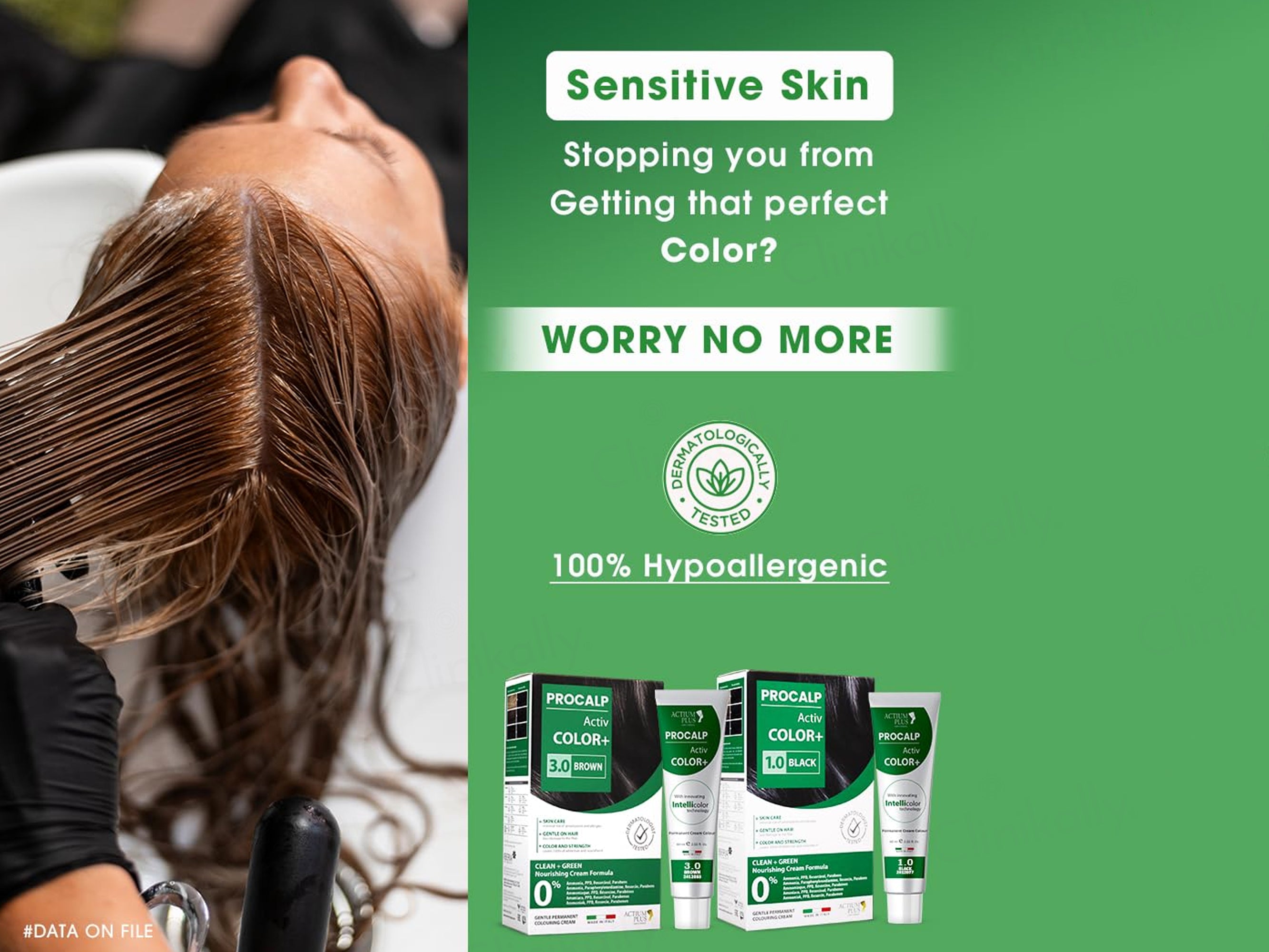 Procalp Activ Color+ Nourishing Gentle Permanent Colouring Cream Kit - 3.0 Brown is a gentle yet effective hair color solution that delivers vibrant, long-lasting color with 100% gray coverage. Formulated with key ingredients like Hydrolyzed Keratin, Sodium Hyaluronate, Arginine HCl, and Wheat & Soya Amino Acids, it nourishes the hair and scalp while improving texture, shine, and hydration. The cream’s dermatologically tested formula is free from harsh chemicals such as ammonia, PPD, resorcinol, and parabens, making it suitable for sensitive scalps. It also includes a range of additional nourishing components like the Keratin Shampoo and Mask, which provide deep hydration and strengthen the hair fibers for healthier, smoother, and shinier hair. This kit comes with all essential components including color cream, developing emulsion, brush and comb duo, gloves, and a product manual for easy application.