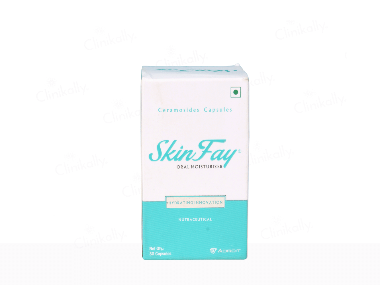Adroit SkinFay Oral Moisturizer Ceramosides Capsule increases skin hydration, reduces inflammation, improves skin barrier function, and offers anti-wrinkle and antioxidant benefits, making it a comprehensive solution for dry skin conditions.