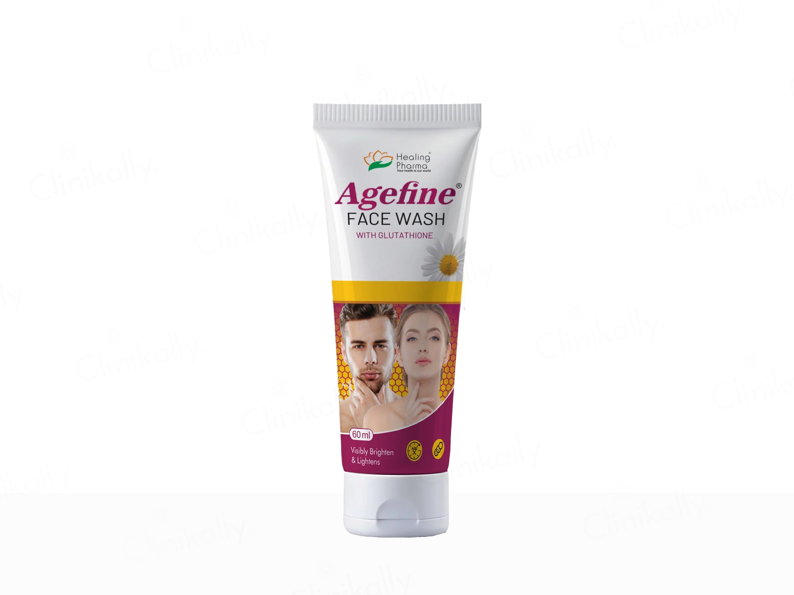 Agefine Glutathione Face Wash is a brightening and cleansing formula enriched with Glutathione, Vitamin E, Niacinamide, Arbutin, Amla Extract, Glycolic Acid, and Licorice Extract that works to visibly lighten, rejuvenate, and clarify the skin. Designed to target dullness, pigmentation, and impurities, it gently removes dirt, oil, and excess sebum without stripping the skin of its natural moisture. The antioxidant-rich blend helps improve skin tone, fade dark spots, and restore a radiant complexion. Suitable for daily use, it supports smoother, fresher, and healthier-looking skin while being effective for both men and women.