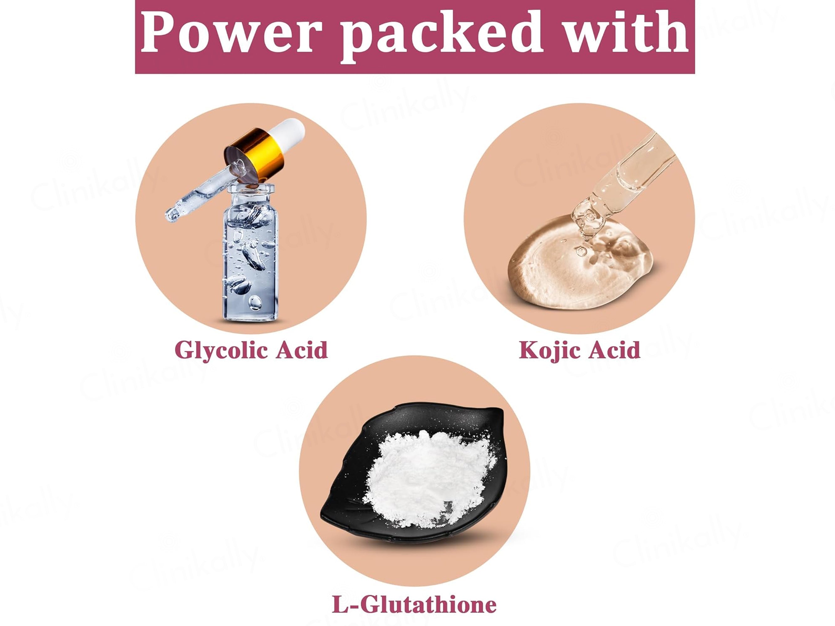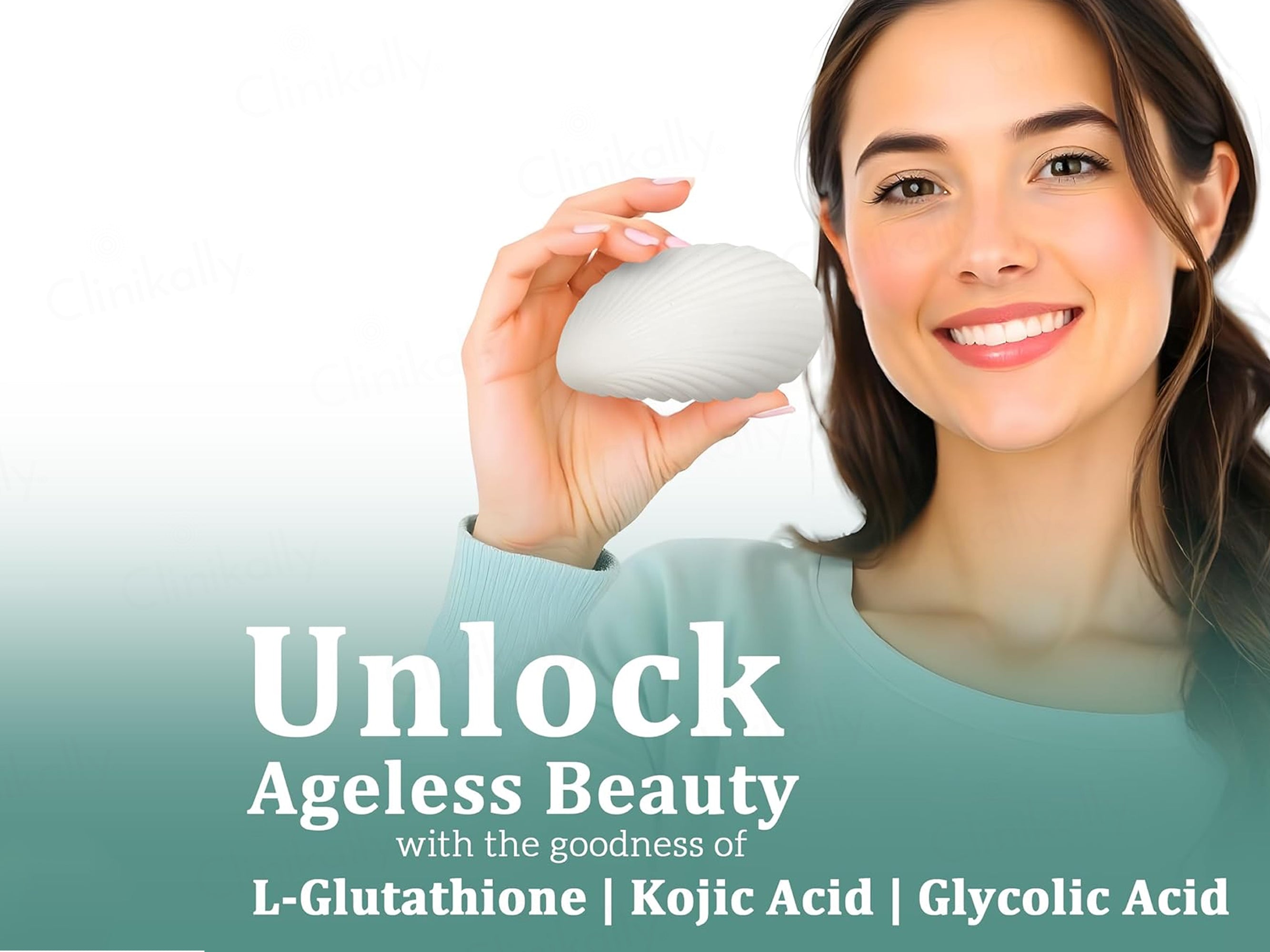 Agefine Soap contains key ingredients like L-Glutathione, Bearberry Extract, Liquorice Extract, Vitamin C, Vitamin E, Kojic Acid, Glycolic Acid, Glycerine, and Titanium Dioxide among others.