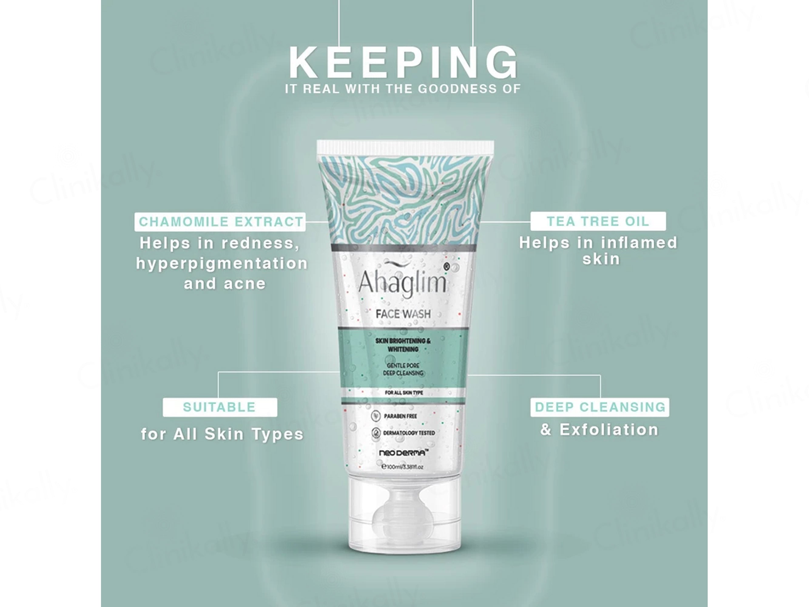 Ahaglim Skin Brightening & Whitening Face Wash is a gentle yet effective formulation designed to cleanse, brighten, and rejuvenate dull skin for a visibly radiant complexion. Enriched with natural fruit-based exfoliants, brightening agents, and hydrating components, it works to remove impurities, reduce pigmentation, and enhance skin tone. Its combination of Aloe Vera, Apple Amino Acid, and Vitamin E helps restore skin moisture while improving texture and elasticity. The inclusion of Glycolic Acid and Decyl Glucoside provides mild exfoliation, promoting smoother, clearer, and brighter skin without stripping natural oils. Suitable for all skin types, this dermatologically tested, non-comedogenic face wash is free from parabens, SLS, and harsh chemicals, making it ideal for daily use to achieve an even-toned, glowing complexion.