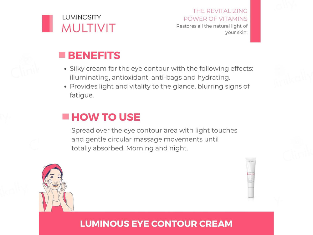 Ainhoa Multivit Luminous Eye Contour Cream is a revitalizing eye cream designed to reduce dark circles, puffiness, and fine lines.