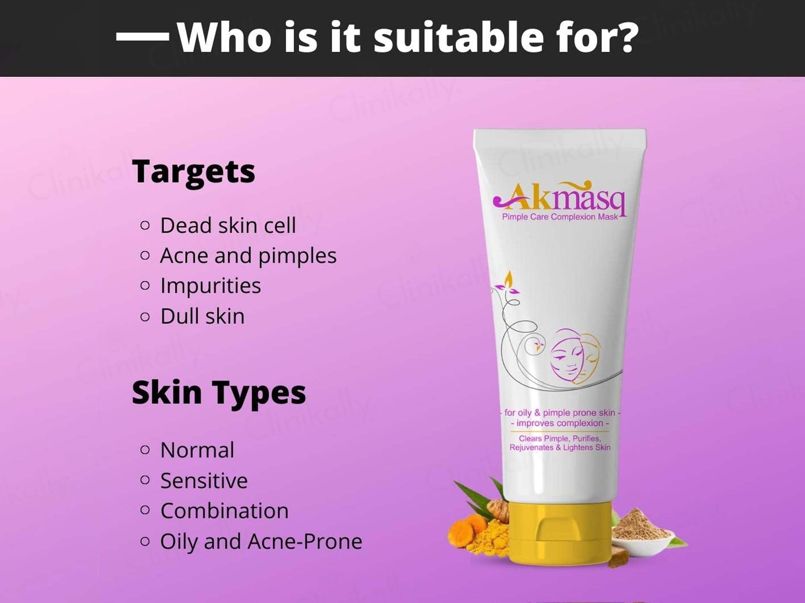 Akmasq Pimple Care Complexion Mask is used to treat pimples, reduce excess oil, and improve skin complexion.