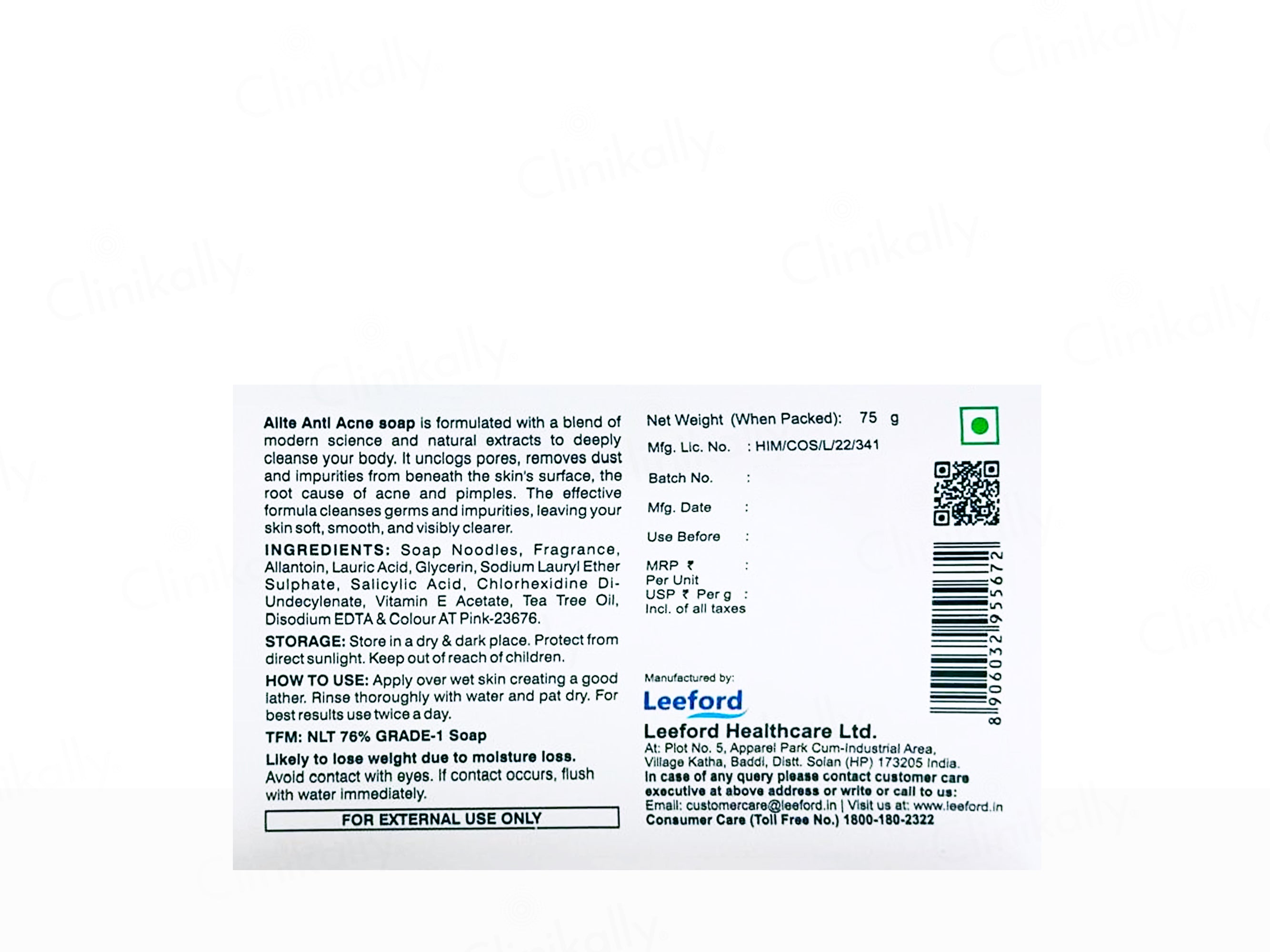 Alite Anti Acne Salicylic Acid & Tea Tree Oil Soap is a skincare product designed to deeply cleanse the body, unclog pores, remove dust and impurities, and address the root cause of acne and pimples with a blend of modern science and natural extracts. Formulated with Salicylic Acid and Tea Tree Oil, it gently exfoliates, removes excess oil, and prevents acne and breakouts, leaving skin soft, smooth, and visibly clearer. This dermatologically tested, paraben-free soap, suitable for daily use on all skin types, requires thorough rinsing after lathering.