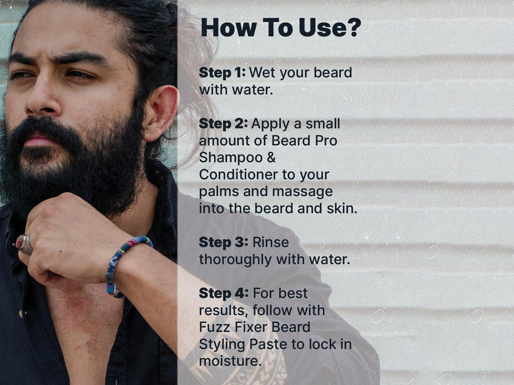 • For best results, follow with Fuzz Fixer Beard Styling Paste to lock in moisture.