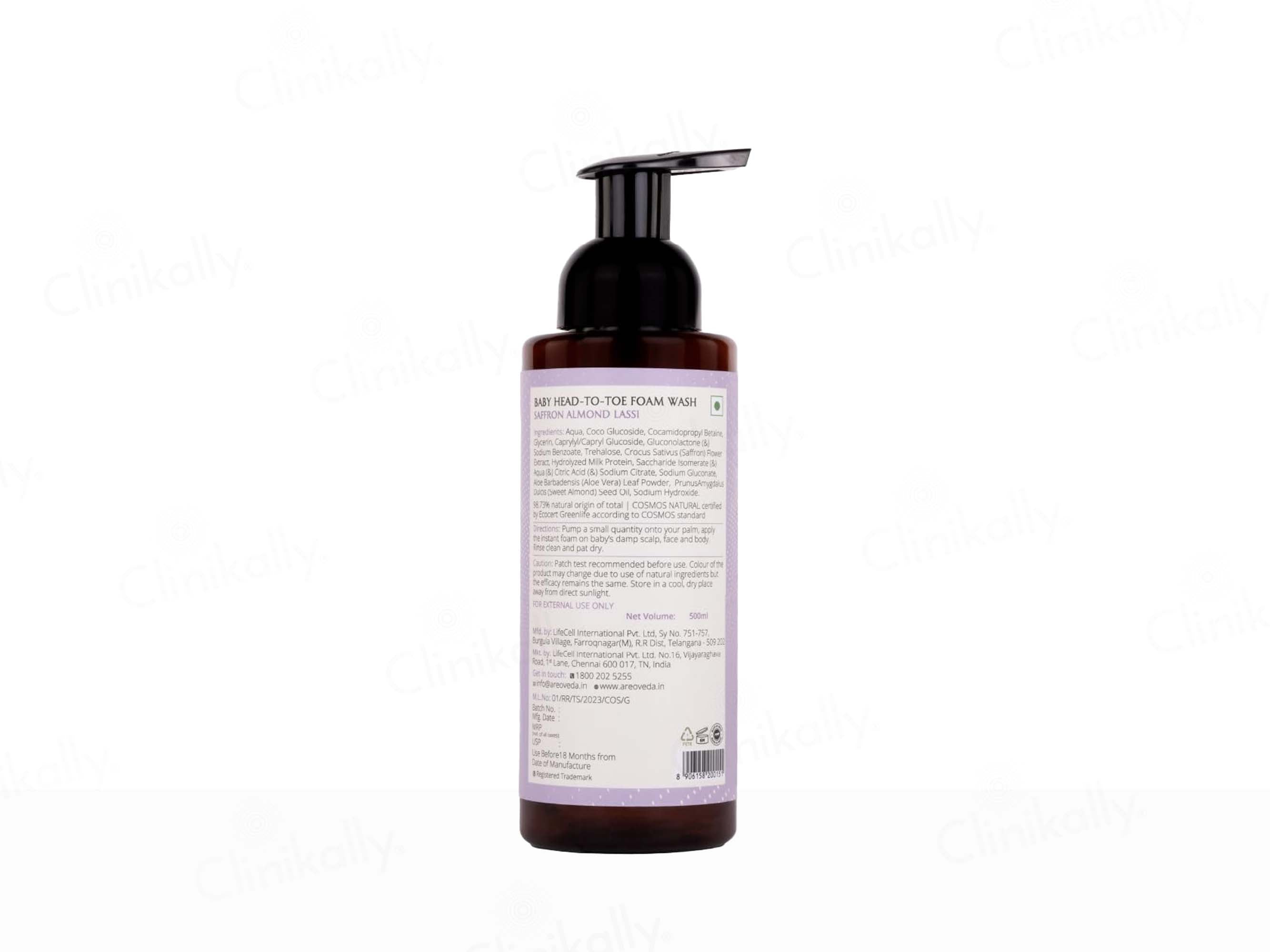 Areoveda Baby Head-To-Toe Foam Wash is a gentle, Ayurvedic-formulated cleanser designed for the delicate skin and hair of babies. This non-irritating, tear-free foam wash is enriched with natural ingredients that nourish and protect, leaving the skin soft and smooth without stripping its natural moisture. Ideal for everyday use, it offers a soothing bath experience, making it perfect for newborns and toddlers alike.