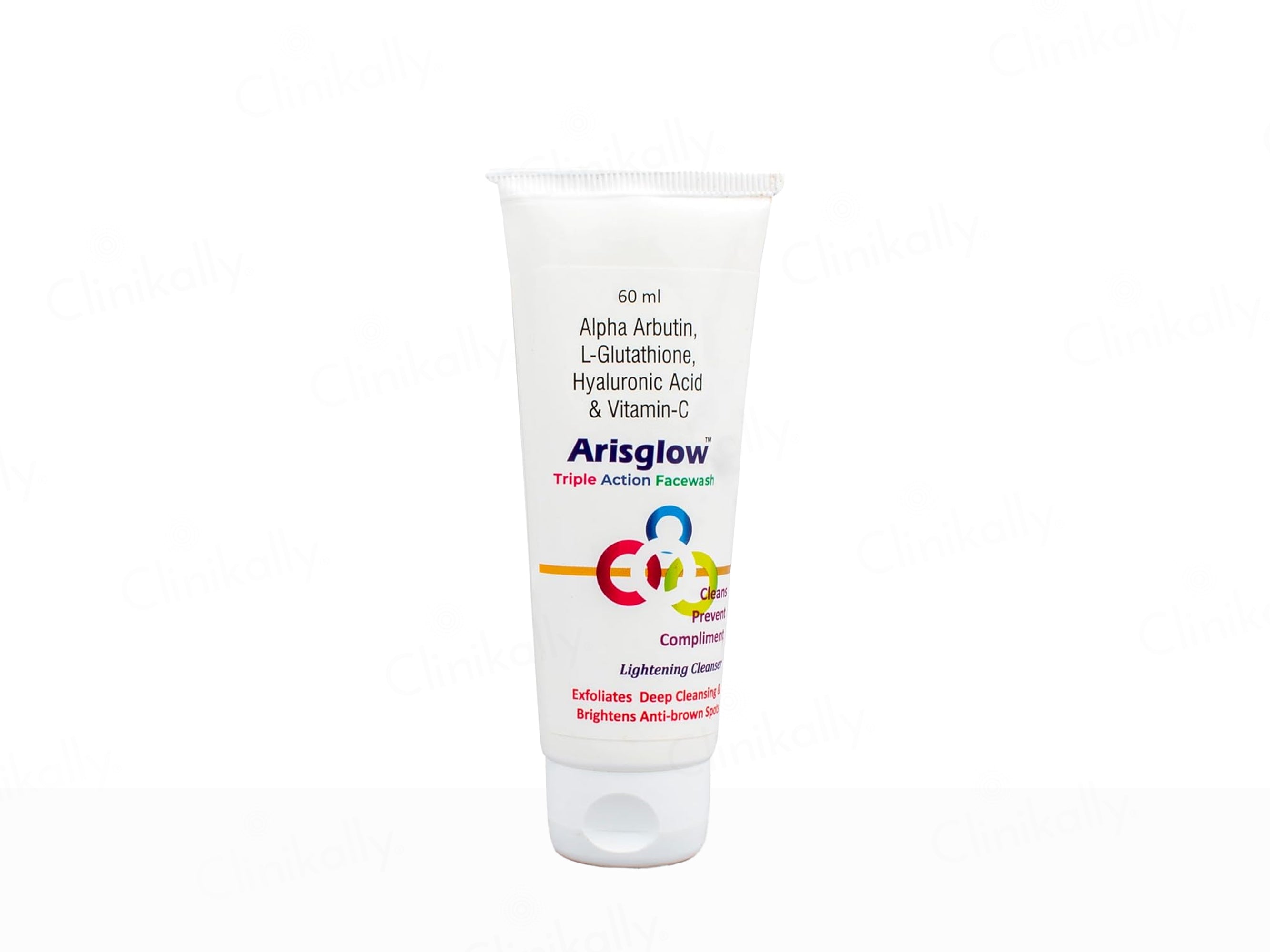 Arisglow Triple Action Facewash is a facial cleanser formulated to deeply cleanse, brighten skin, and help reduce pigmentation and dark spots.