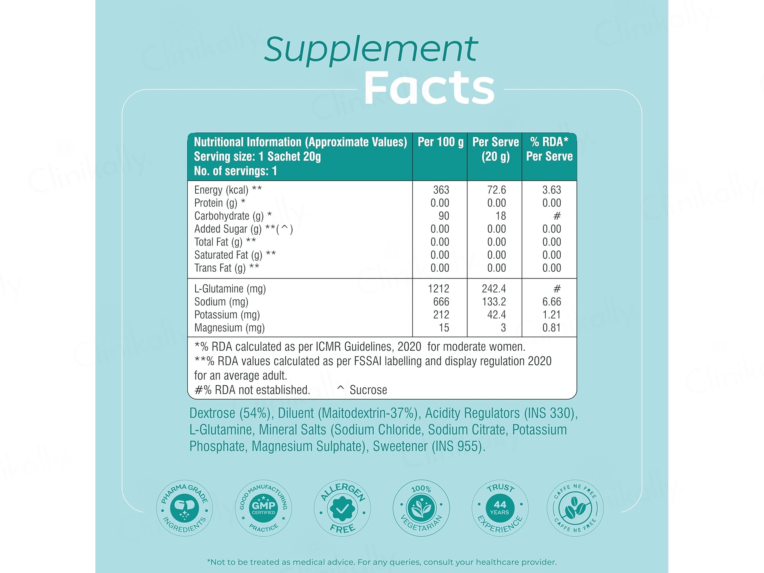 - Dissolve 1 sachet (20gm) in 500ml of water, mix well, and consume once daily or as needed during activity; shake before drinking for best results.