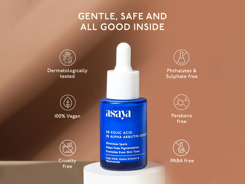 Asaya 2% Kojic Acid + 1% Alpha Arbutin Face Serum is generally gentle but patch testing is advised for sensitive skin.