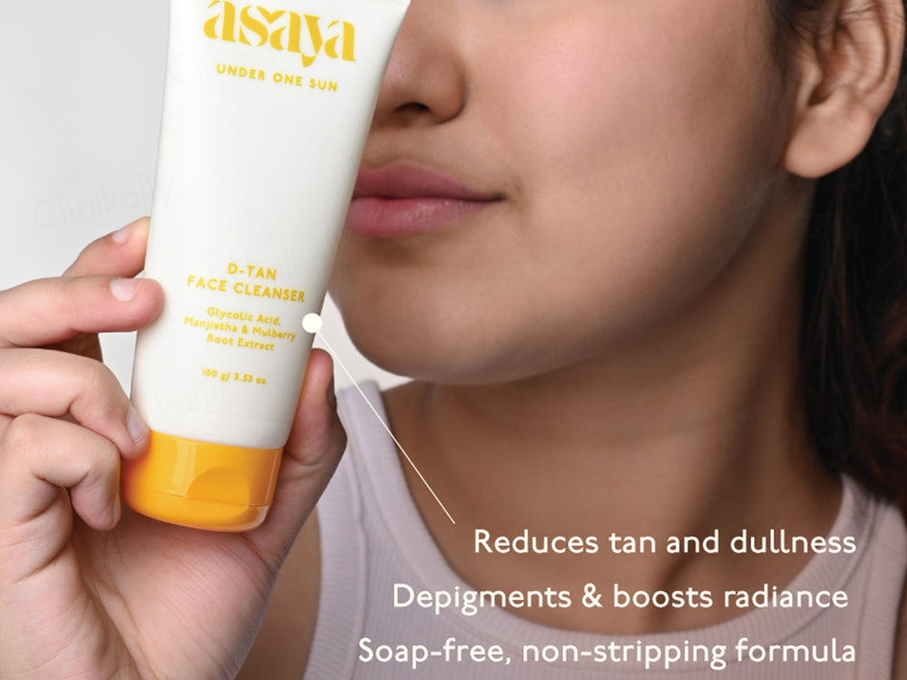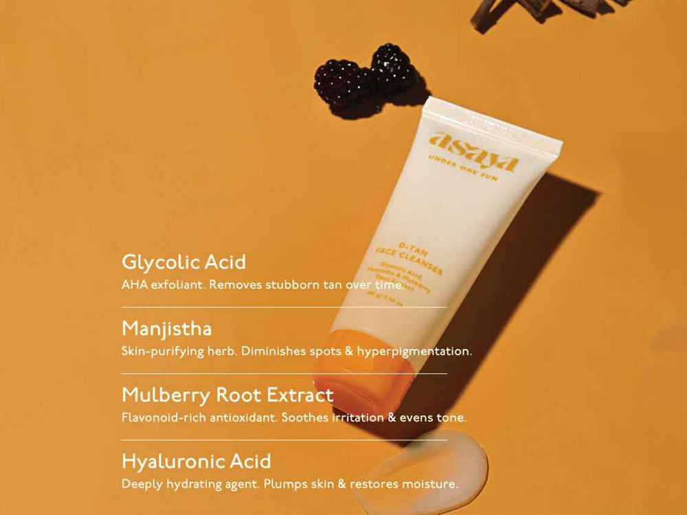 Asaya Under One Sun Detan Face Face Cleanser removes dirt, oil, tanning, and impurities while hydrating the skin.