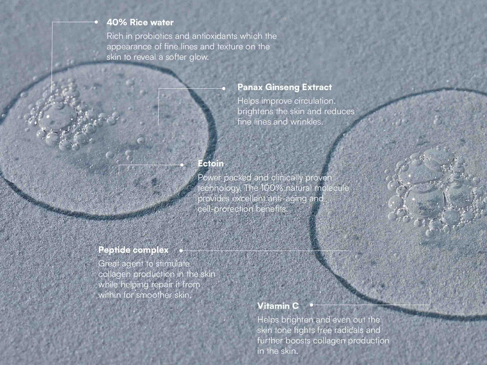 Awear Beauty Glass Skin Peptide Glow Serum is a lightweight, radiance-boosting face serum formulated to deliver a smooth, luminous glass-skin finish. Powered by 40% rice ferment filtrate, panax ginseng extract, ectoin, and a potent peptide complex, it helps stimulate collagen production, improve skin texture, and protect against photoaging. Enriched with vitamin C, licorice, centella, probiotic ferments, and multi-molecular hyaluronic acid, this advanced glow serum hydrates deeply, evens skin tone, reduces fine lines, and calms irritation, revealing plump, healthy, and visibly glowing skin.