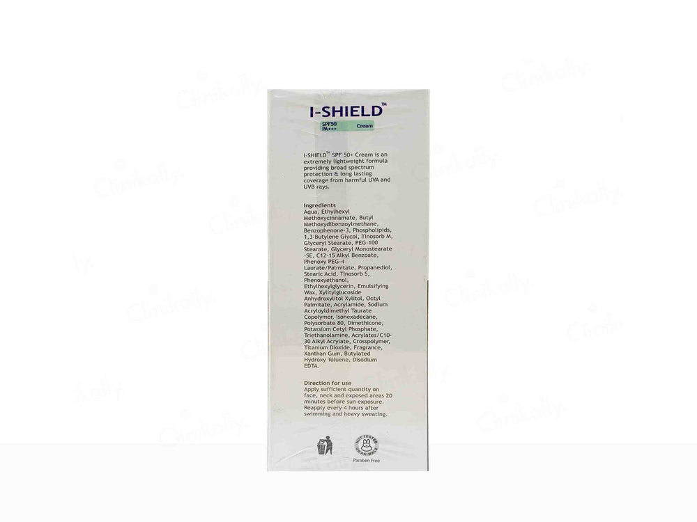 Azelia I-Shield Sunscreen Cream SPF 50 PA+++ offers SPF 50 protection against sunburn and PA+++ protection against premature aging caused by UVA rays.