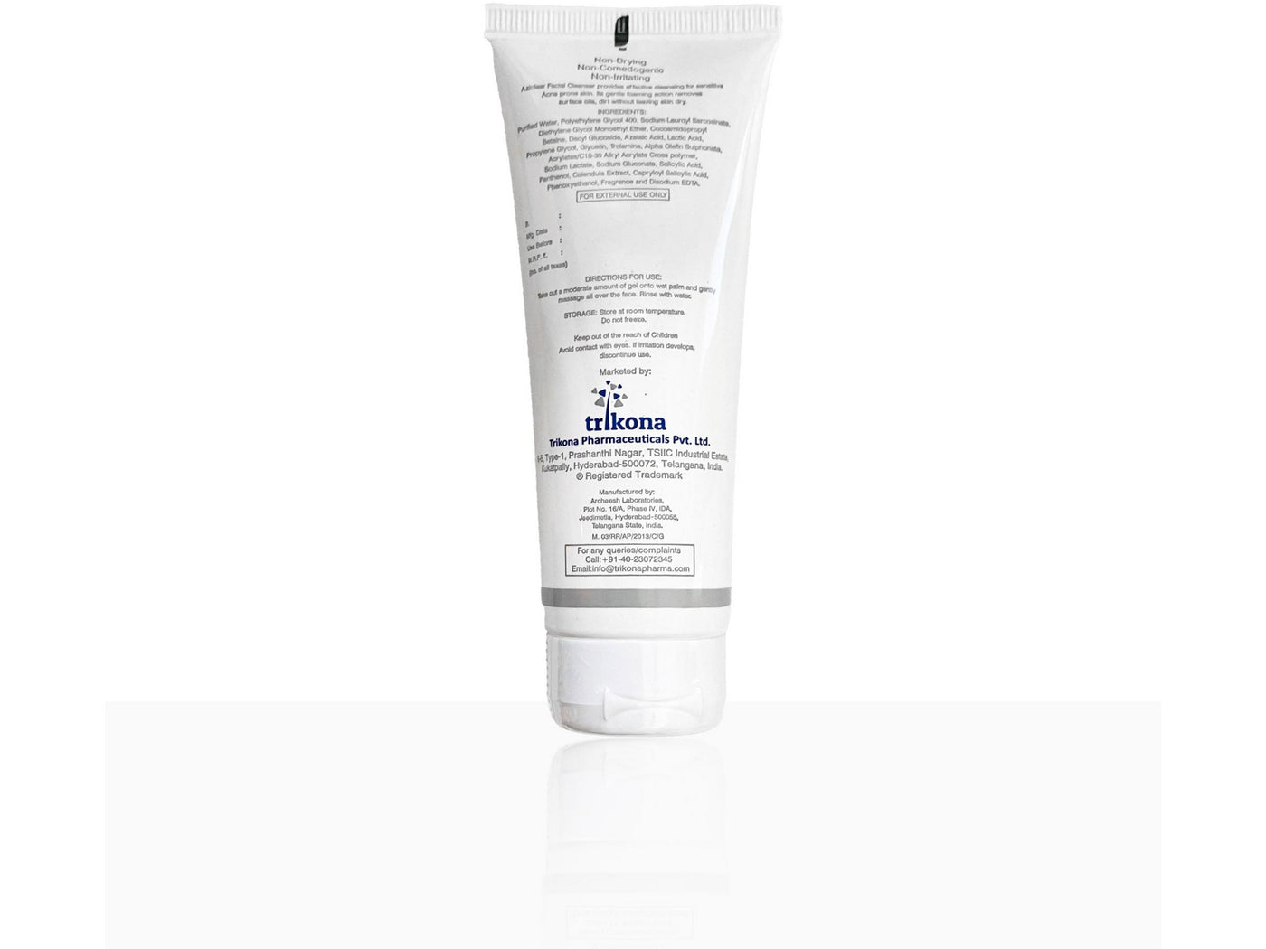 Aziclear Anti Acne Facial Cleanser contains salicylic acid and lactic acid, which micro-exfoliate to remove dead skin cells and improve skin tone.