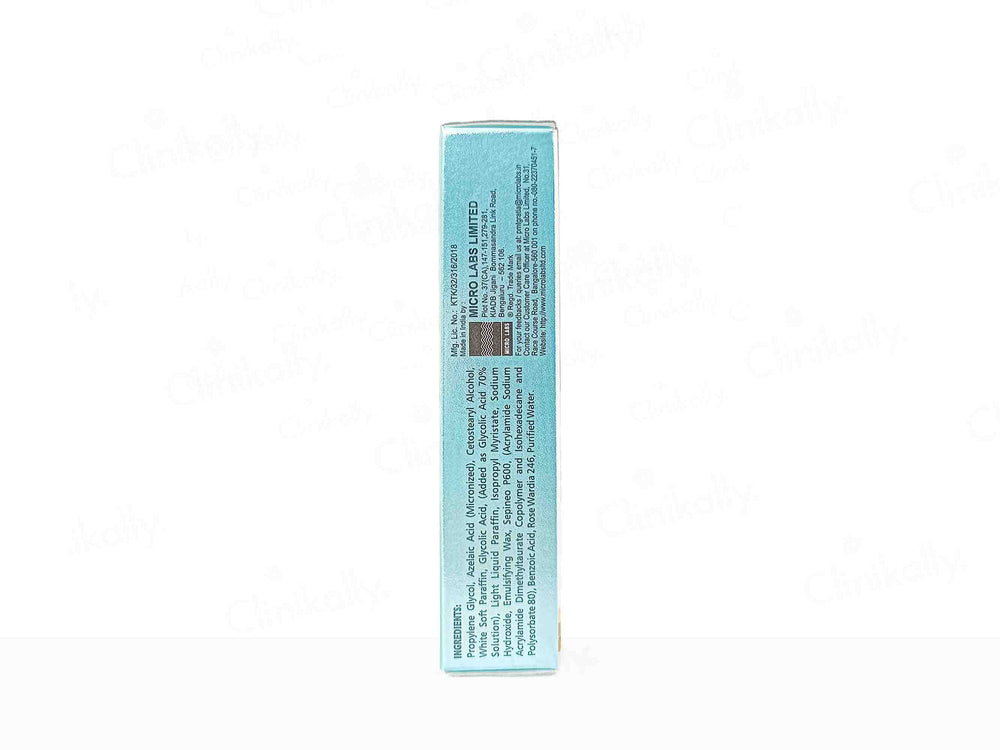 Aziderm Plus Cream combines Azelaic Acid to inhibit melanin production and Glycolic Acid for gentle skin exfoliation, reducing hyperpigmentation.