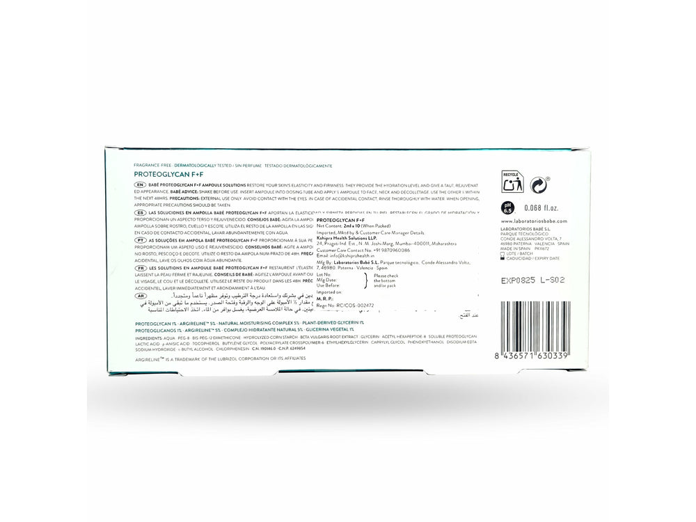 BABE Proteoglycan F+F is a skincare product designed to provide elasticity, firmness, and hydration to the skin.