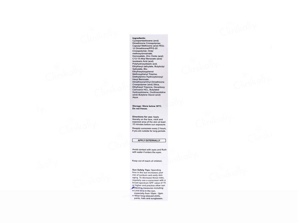 - Apply generously to the face and neck 15 minutes before sun exposure.