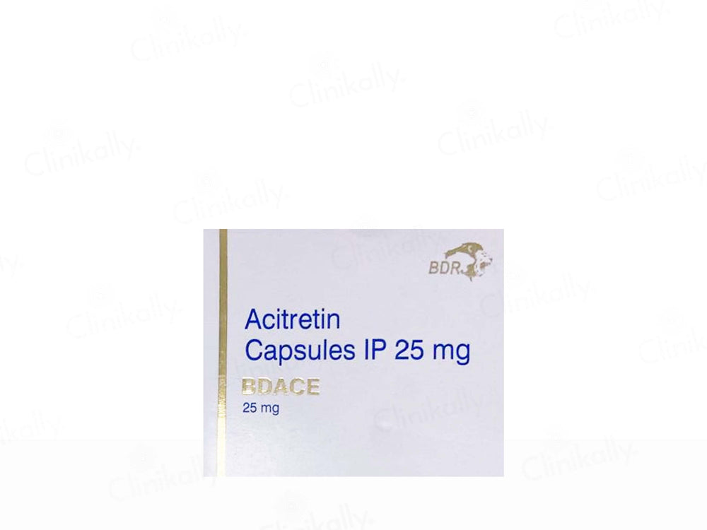 Bdace 25mg Capsule contains isotretinoin, a potent medication used for treating severe acne, such as nodular or cystic acne, that does not respond to other therapies. It works by reducing sebum production, shrinking oil glands, and preventing clogged pores, thereby reducing inflammation and clearing acne. Under strict medical supervision, Bdace 25mg helps to prevent new acne formation, reduce scarring, and improve skin clarity, offering a targeted solution for persistent acne issues.