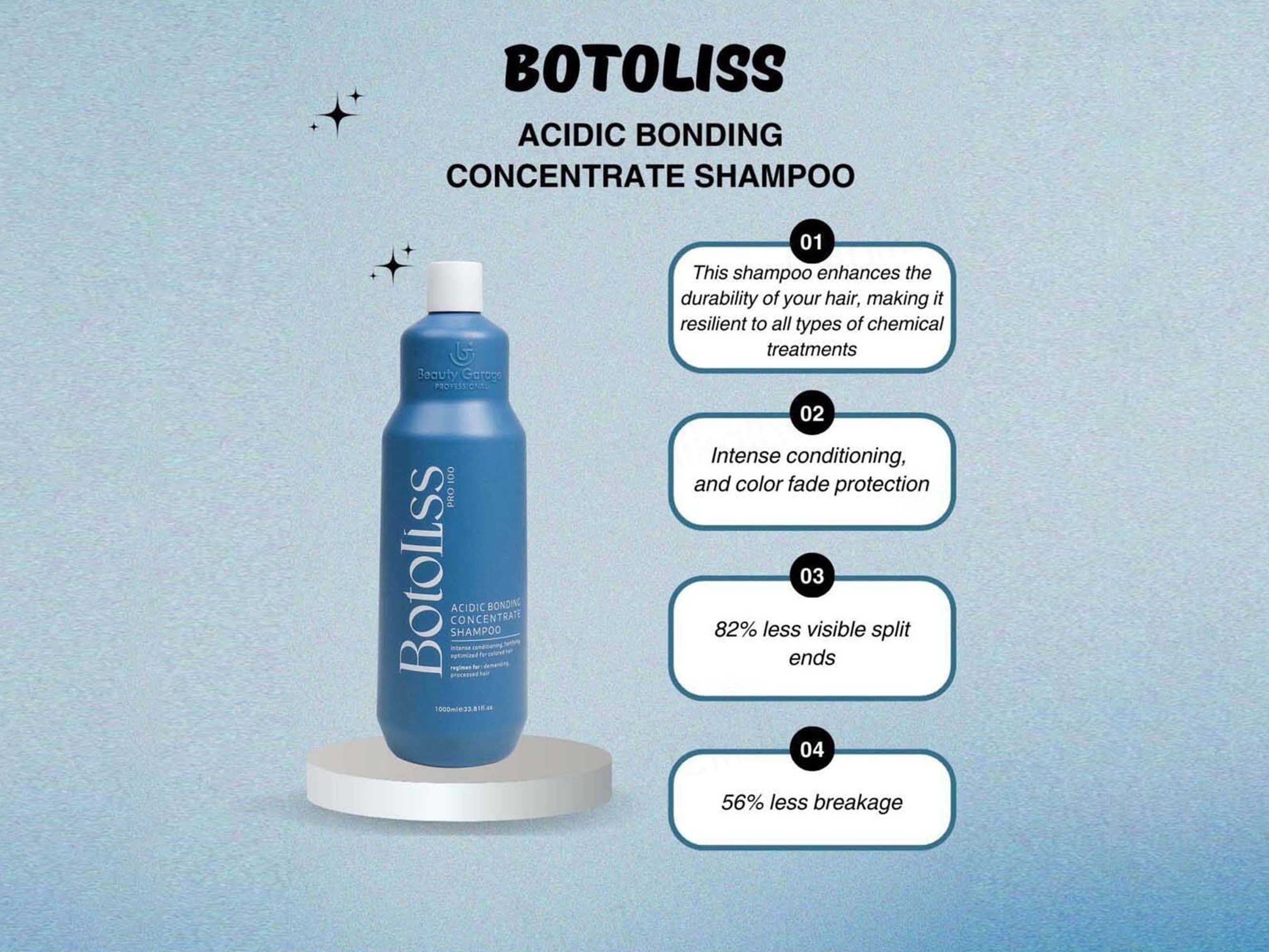 Beauty Garage Botoliss Pro 100 Acidic Bonding Concentrate Shampoo is a hair care solution designed to repair and strengthen damaged hair while restoring its natural pH balance using advanced acidic bonding technology.