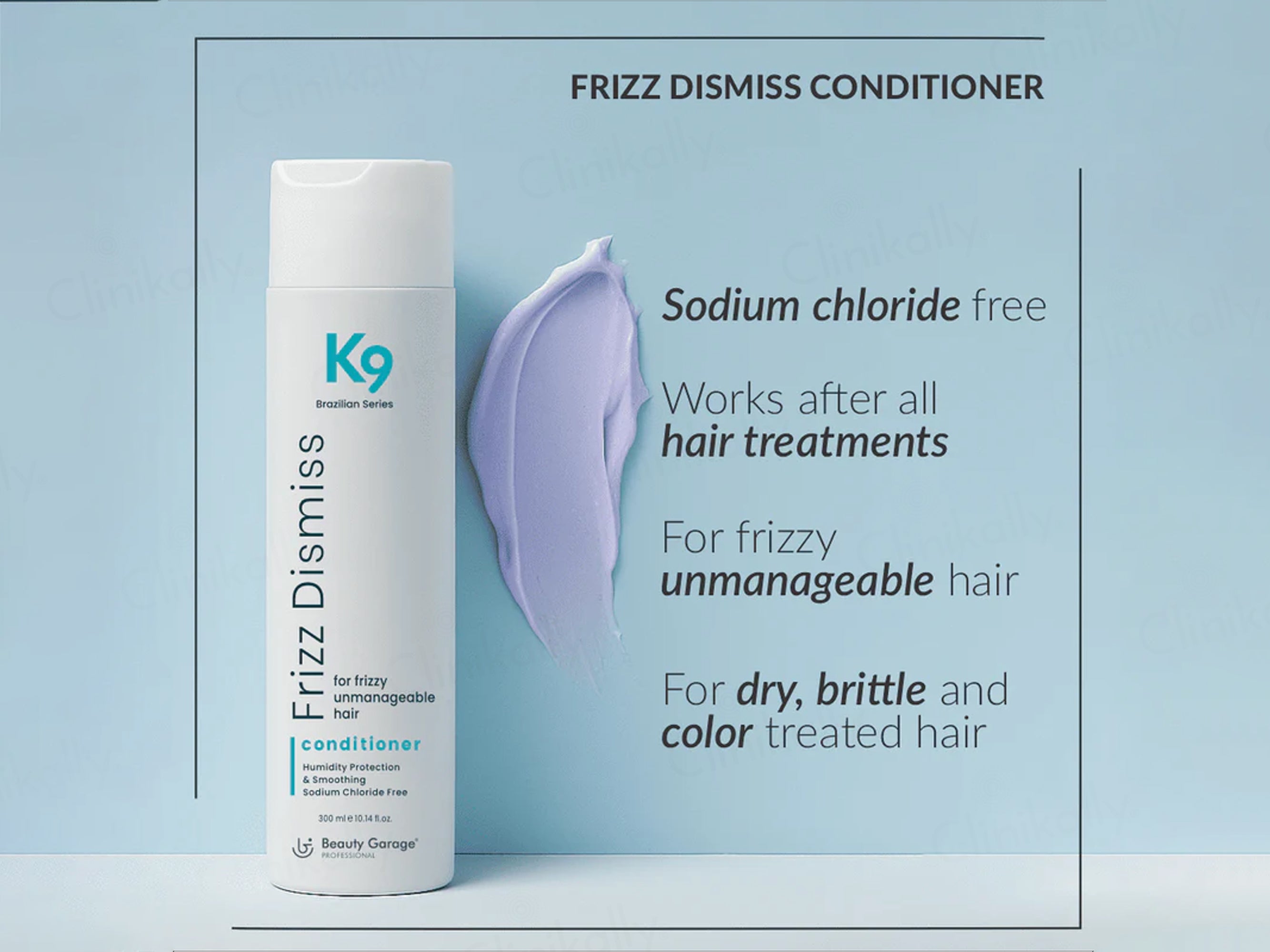 Beauty Garage K9 Frizz Dismiss Conditioner (300 ml) is a luxurious and nourishing conditioner specifically designed to tame frizz and smooth unruly hair. Infused with advanced frizz-control technology, this conditioner helps to seal the hair cuticle, reducing flyaways and promoting long-lasting smoothness.