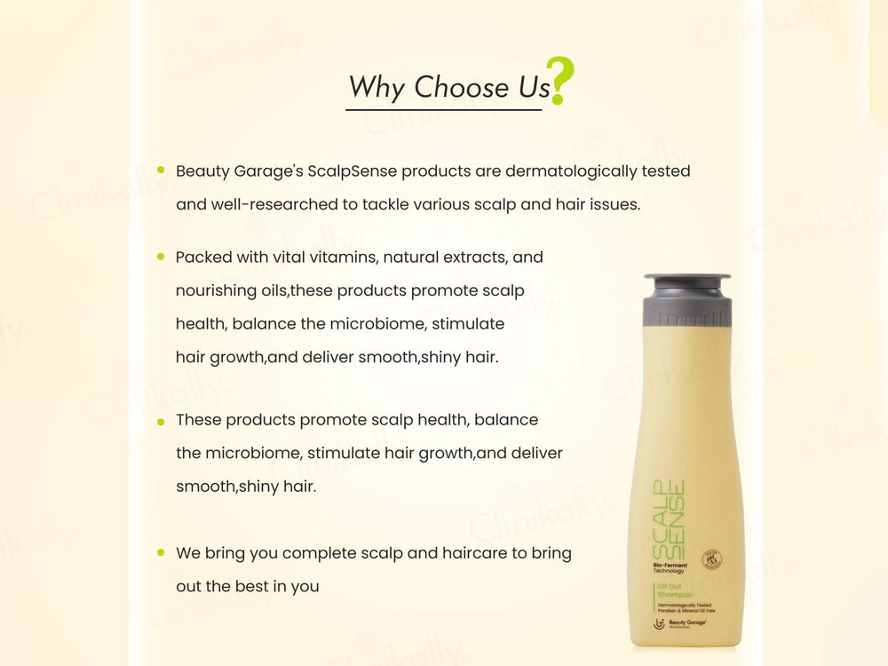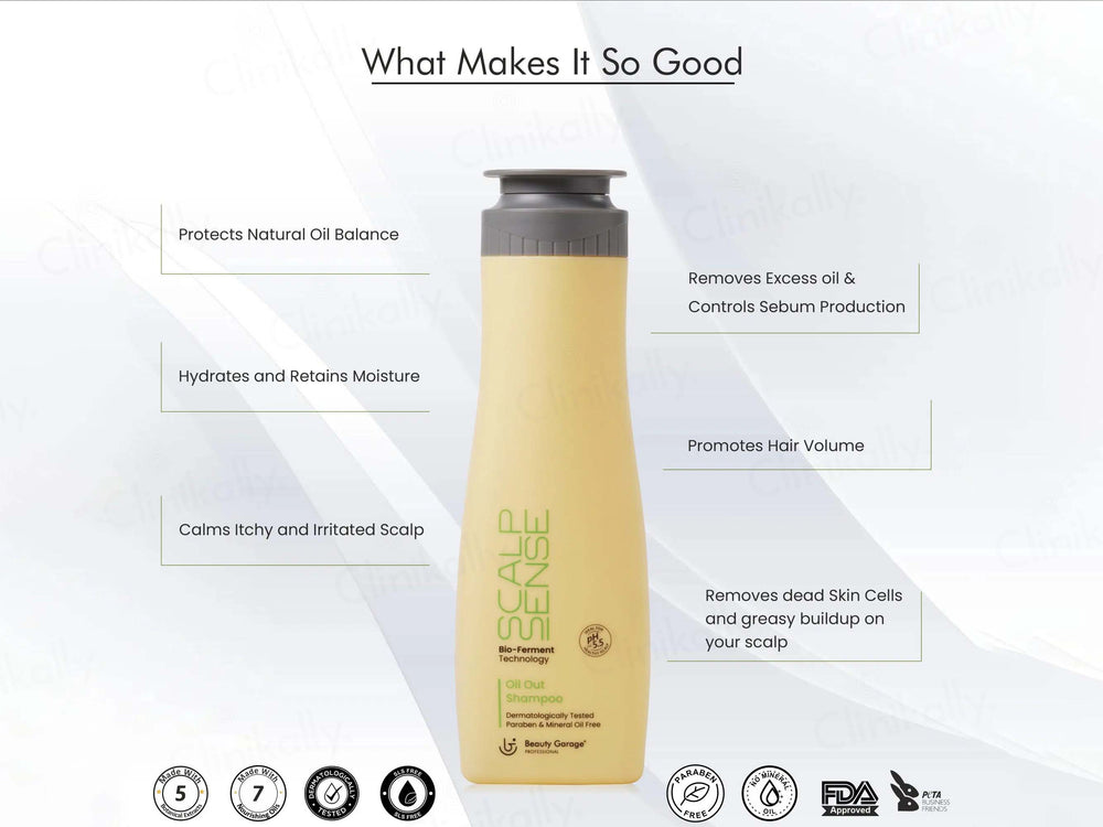 Beauty Garage ScalpSense Oil Out Shampoo is a specialized hair care product formulated to cleanse and balance the scalp by effectively removing excess oil and product buildup.