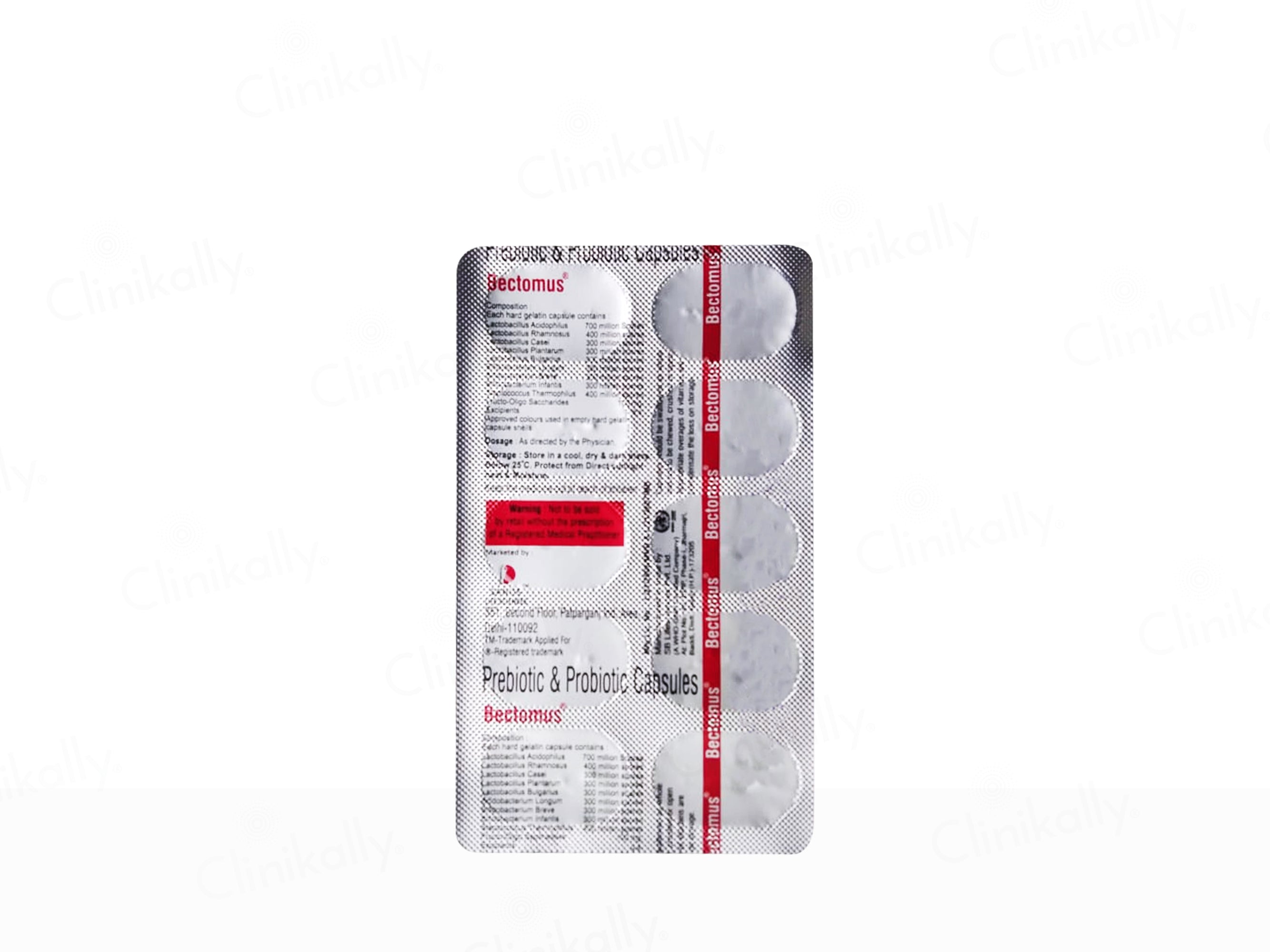 Bectomus Prebiotic & Probiotics Capsule is a dietary supplement combining beneficial probiotic strains and prebiotics to support digestive health and enhance immune function.