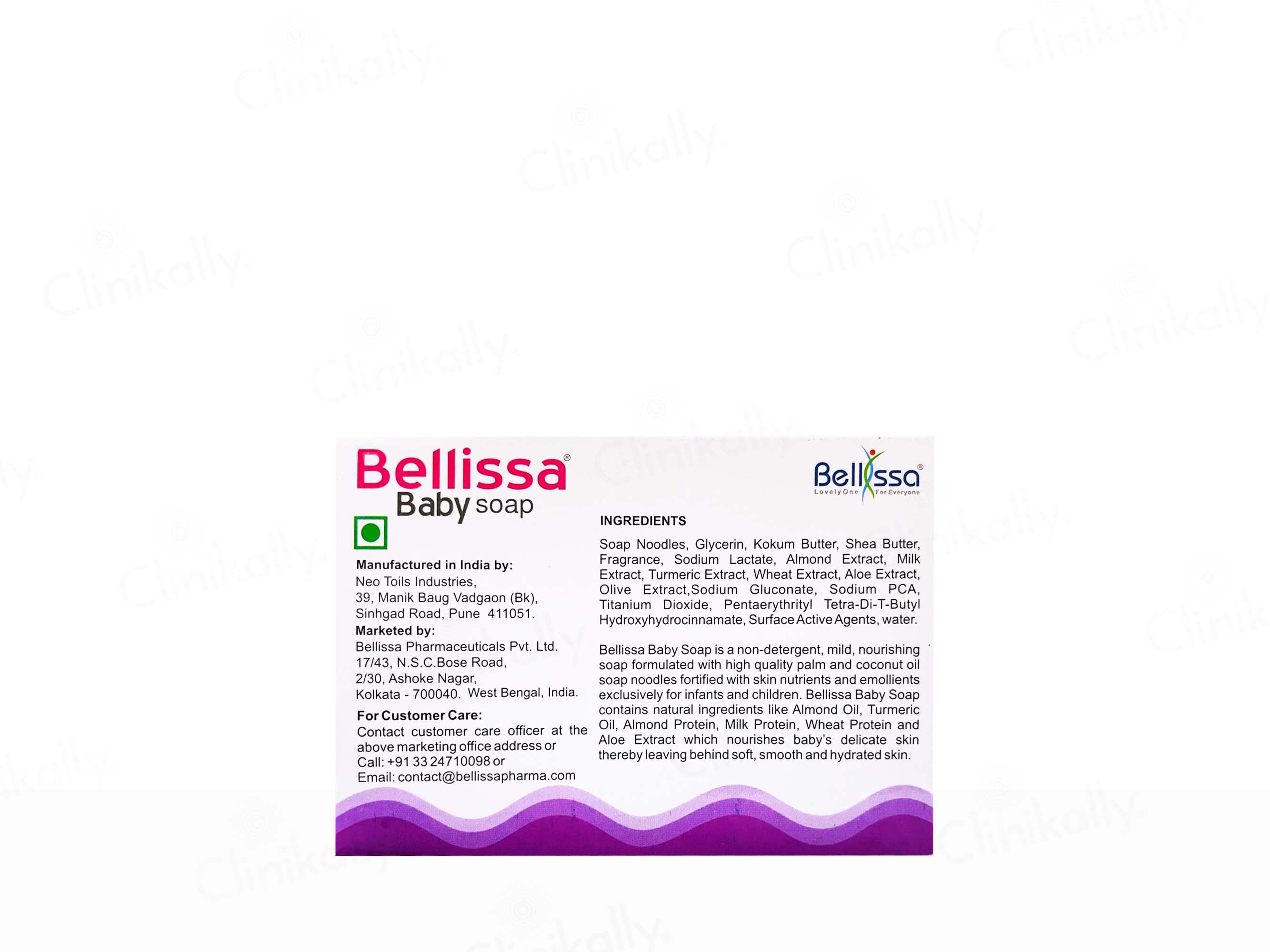 Bellissa Baby Soap provides nourishment, hydration, and gentle cleansing with ingredients like almond oil, turmeric oil, and milk protein.