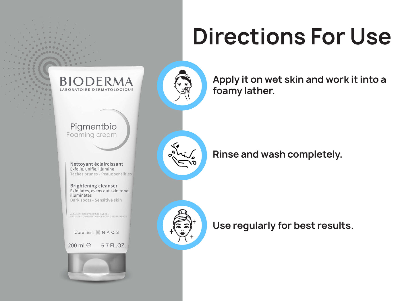 Bioderma Pigmentbio Foaming Cream is used to brighten the skin, reduce dark spots, and even out skin tone.