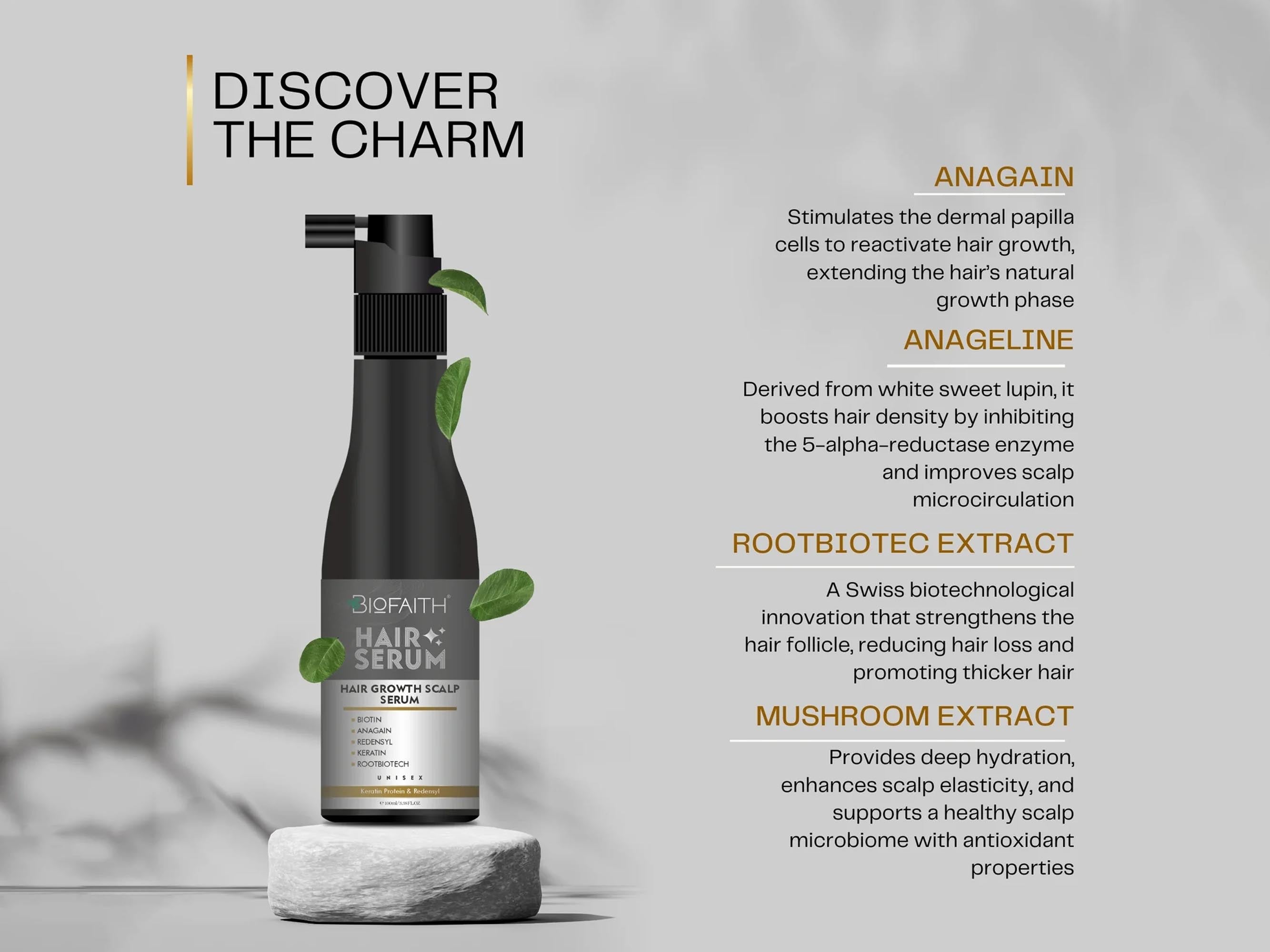 Biofaith Hair Regrowth Serum is used to promote hair regrowth, reduce hair thinning, and strengthen existing hair.