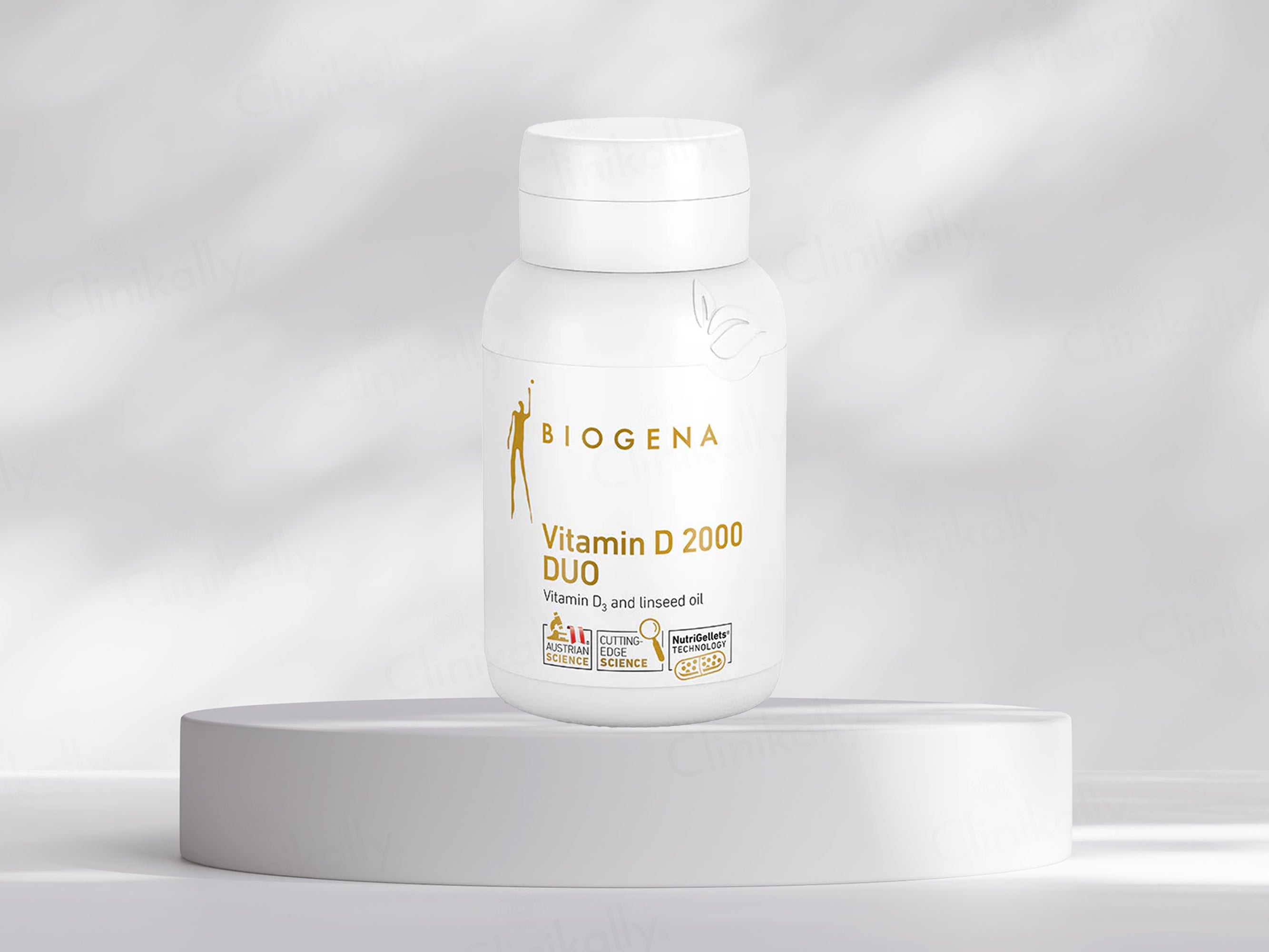 Biogena Vitamin D 2000 Duo Gold Food Supplement Capsule is a premium daily supplement combining high-potency vitamin D3 with linseed oil and lutein to support immune function, bone strength, and overall vitality. Formulated with 2000 IU of vitamin D3, it ensures optimal absorption and bioavailability, while the addition of linseed oil offers essential omega fatty acids. The lutein component enhances antioxidant support, making this supplement ideal for those seeking comprehensive nutritional protection. Developed with Austrian quality standards and Nutrisorb technology for superior efficacy and purity, it supports a balanced and healthy lifestyle.