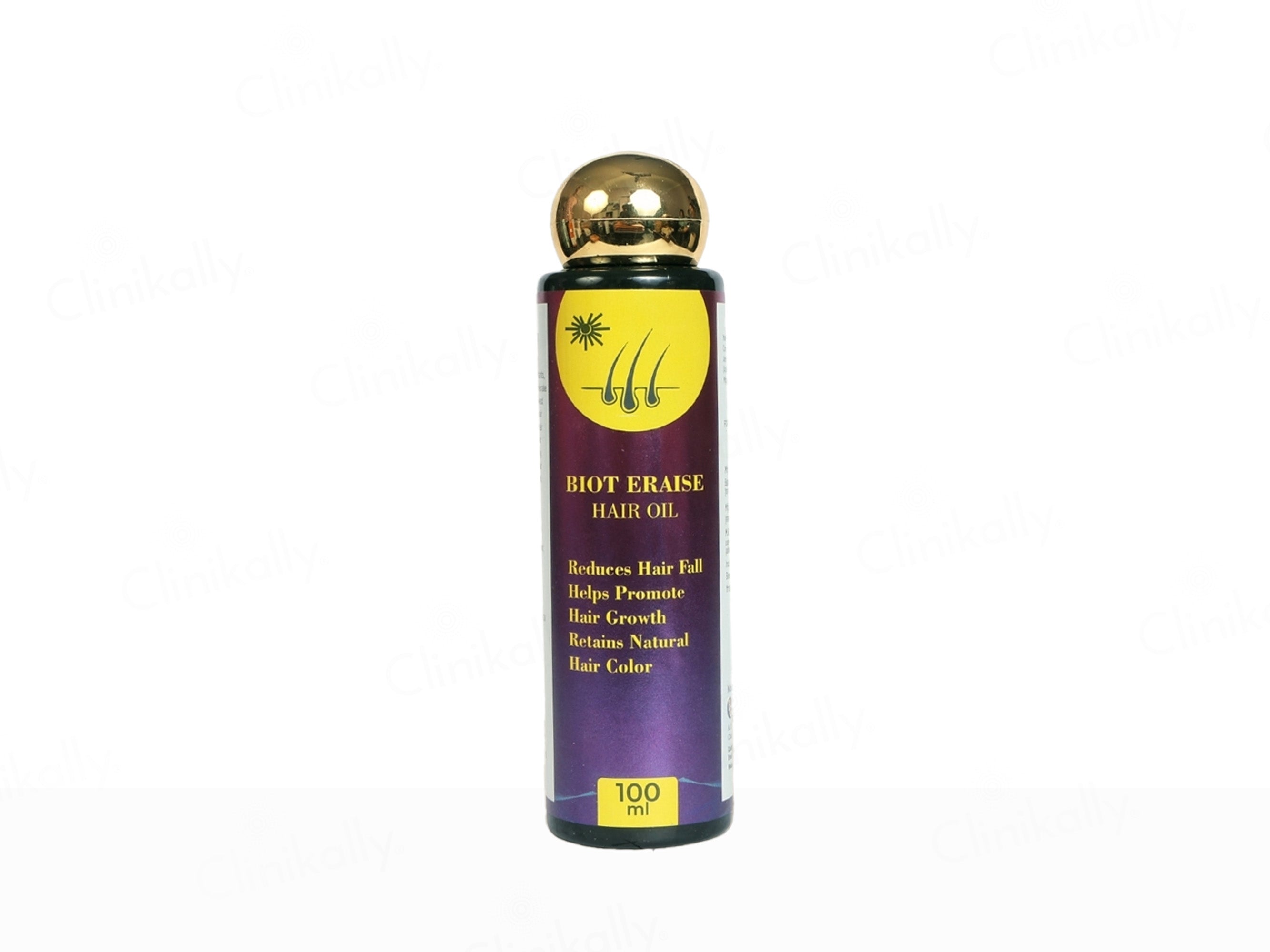 Biot Eraise Hair Oil reduces hair fall and promotes growth with Biotin and Argan Oil.