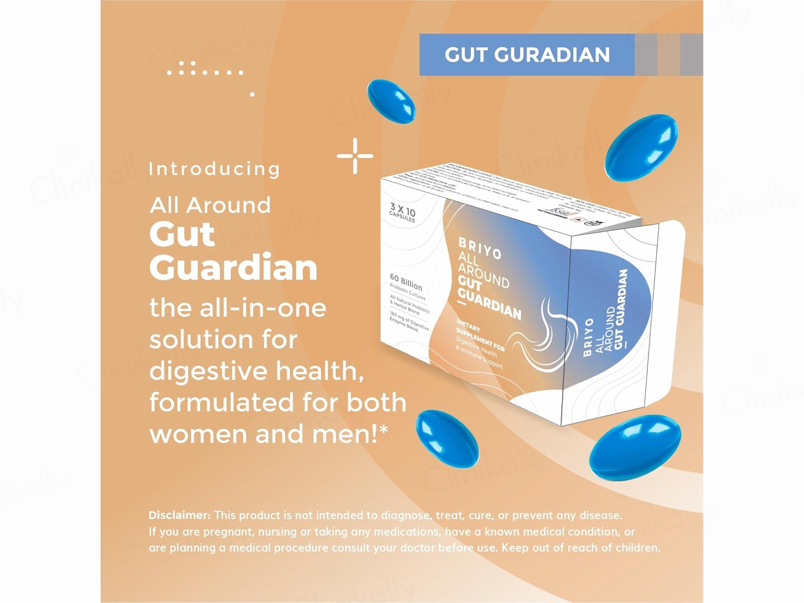 - Take Briyo All Around Gut Guardian 60 Billion CFU Dietary Supplement Capsule as directed by your healthcare professional.