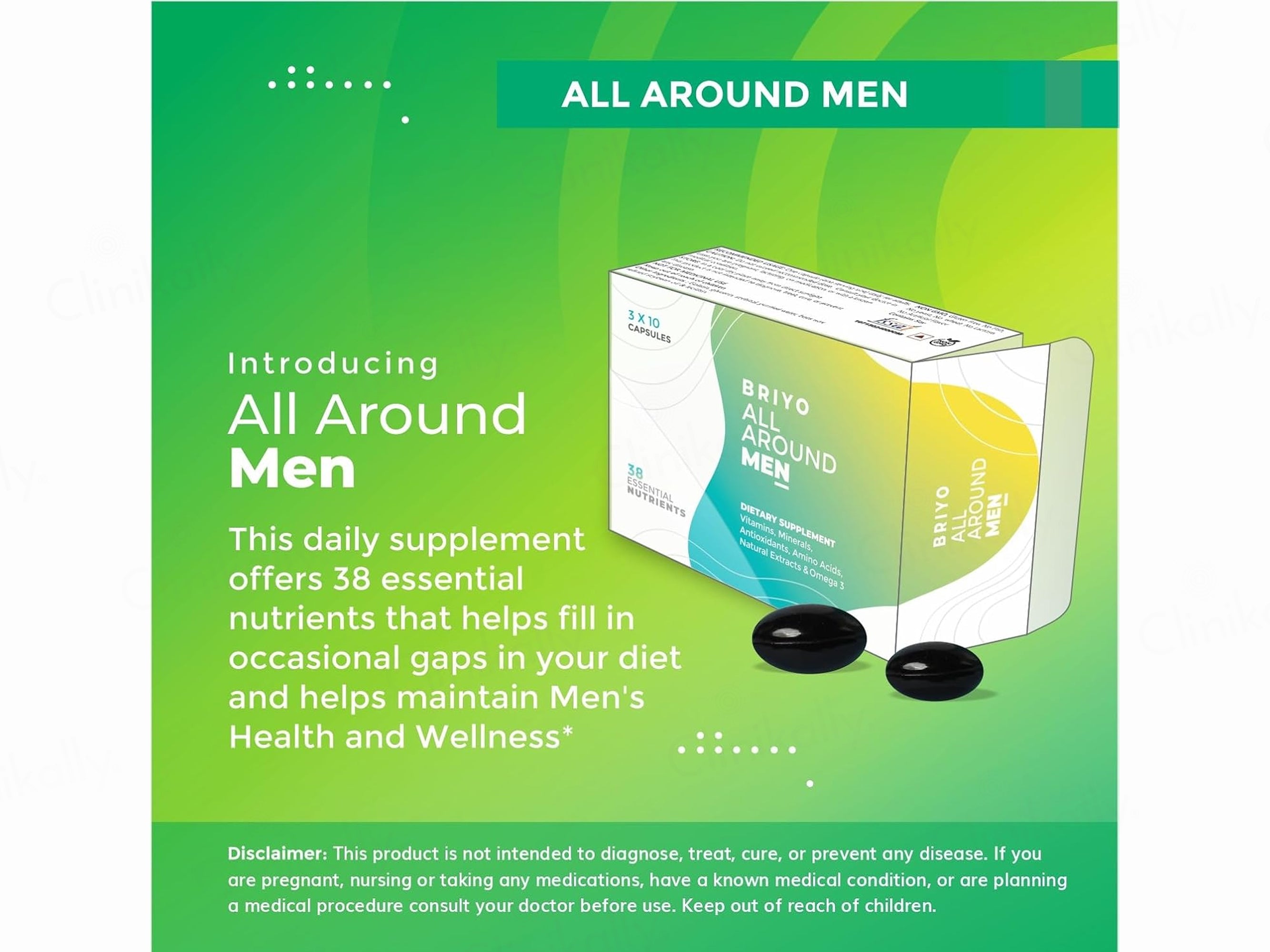 - Take Briyo All Around Men Dietary Supplement Capsule as directed by your healthcare professional.