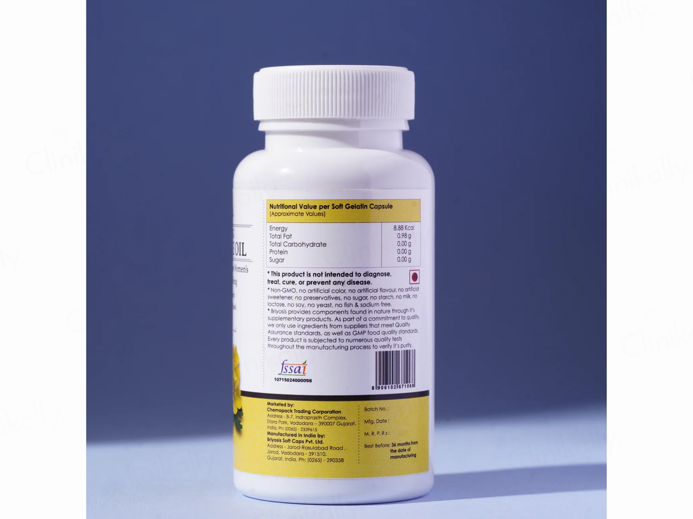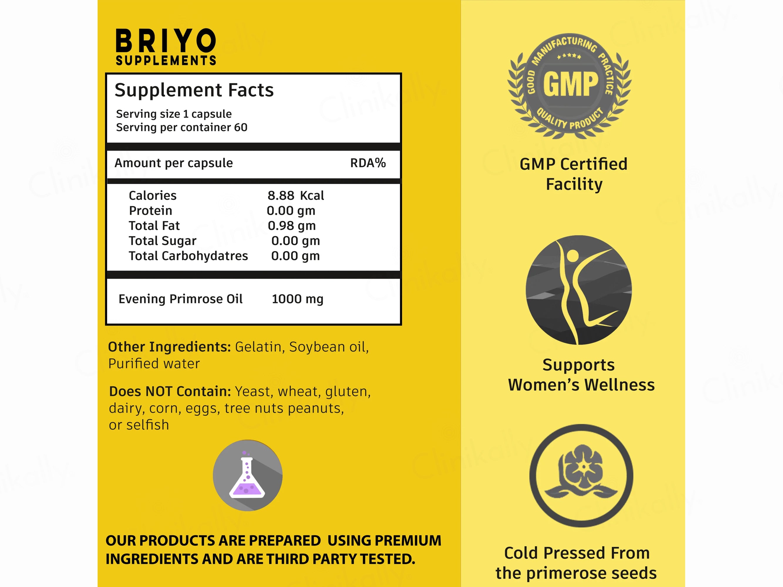 Briyo Evening Primrose Oil 1000 mg Dietary Supplement Capsule