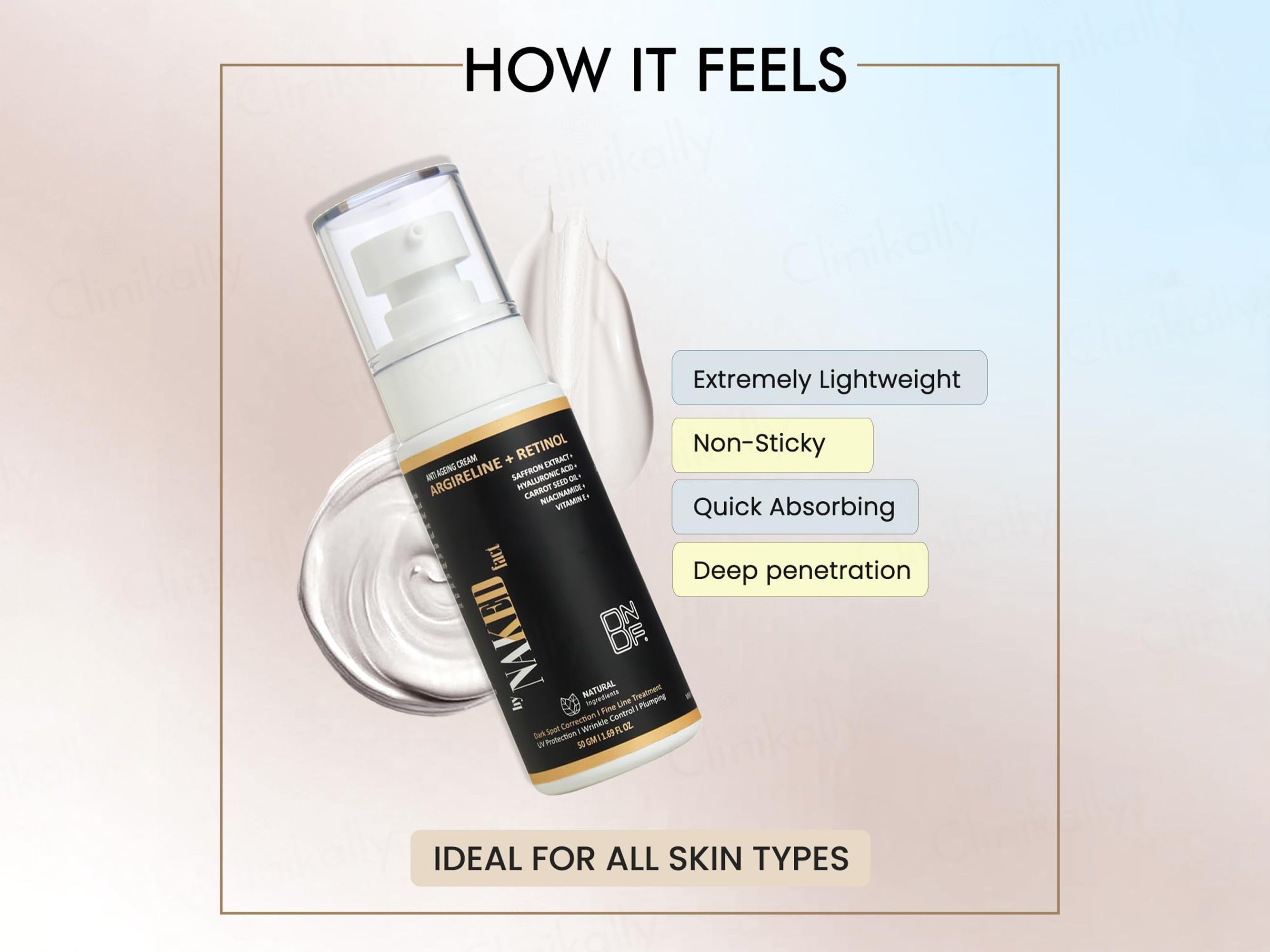 By Naked Fact Argireline + Retinol Anti Ageing Cream is an advanced rejuvenating formula designed to target wrinkles, fine lines, and dark spots while improving overall skin texture and elasticity. Enriched with Argireline to relax facial tension and reduce wrinkle depth, Retinol to promote cell renewal, clear pores, and brighten the skin, and Niacinamide to minimize pores and even out skin tone, this cream delivers visible age-defying results. The addition of Hyaluronic Acid enhances hydration and firmness, while Saffron Extract and Carrot Seed Oil nourish and repair the skin barrier. Vitamin E further provides antioxidant protection to defend against environmental stressors. Together, these ingredients help in restoring radiance, firmness, and youthful glow with continued use.