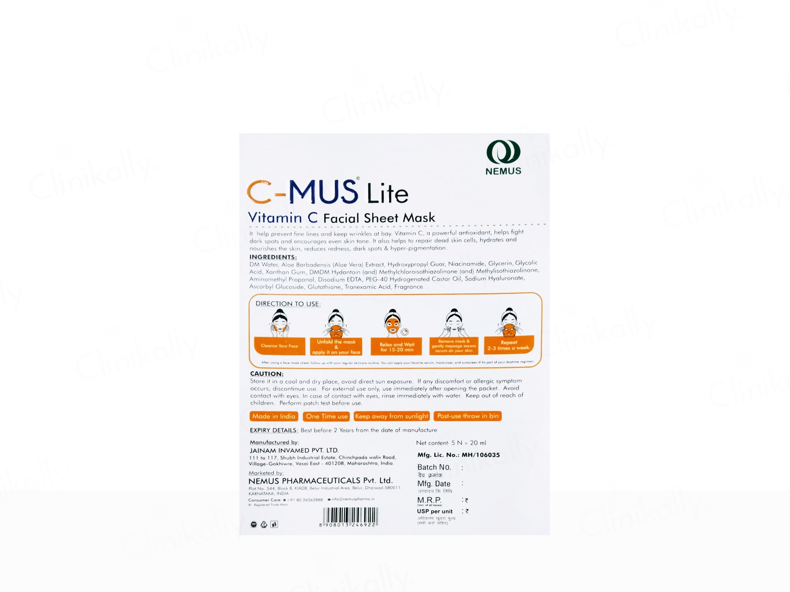 C-Mus Lite Vitamin C Skin Lightening & Hydrating Facial Sheet Mask