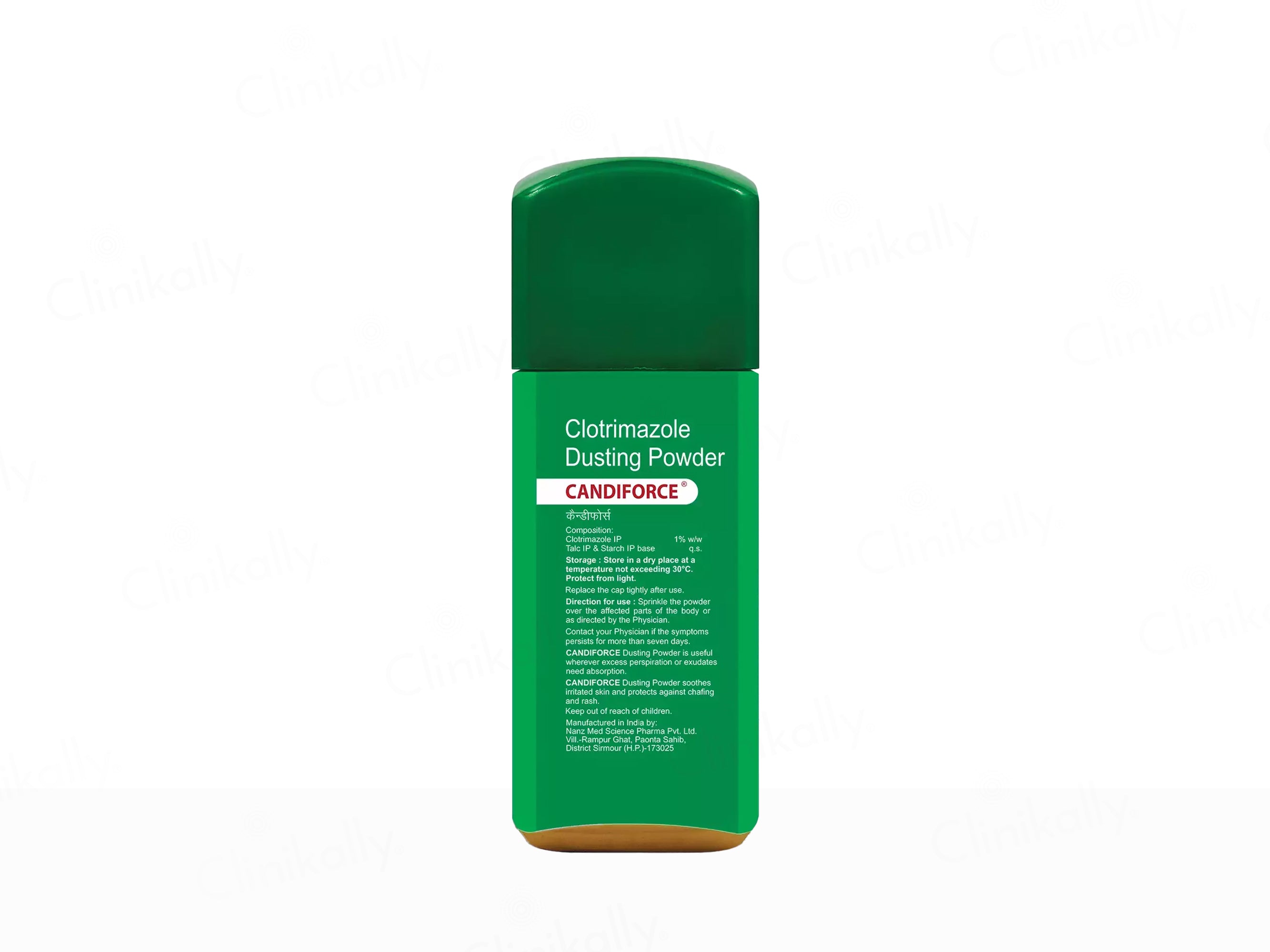 Candiforce Dusting Powder works by using Clotrimazole IP to inhibit the growth of fungi responsible for skin infections and associated itching or irritation.