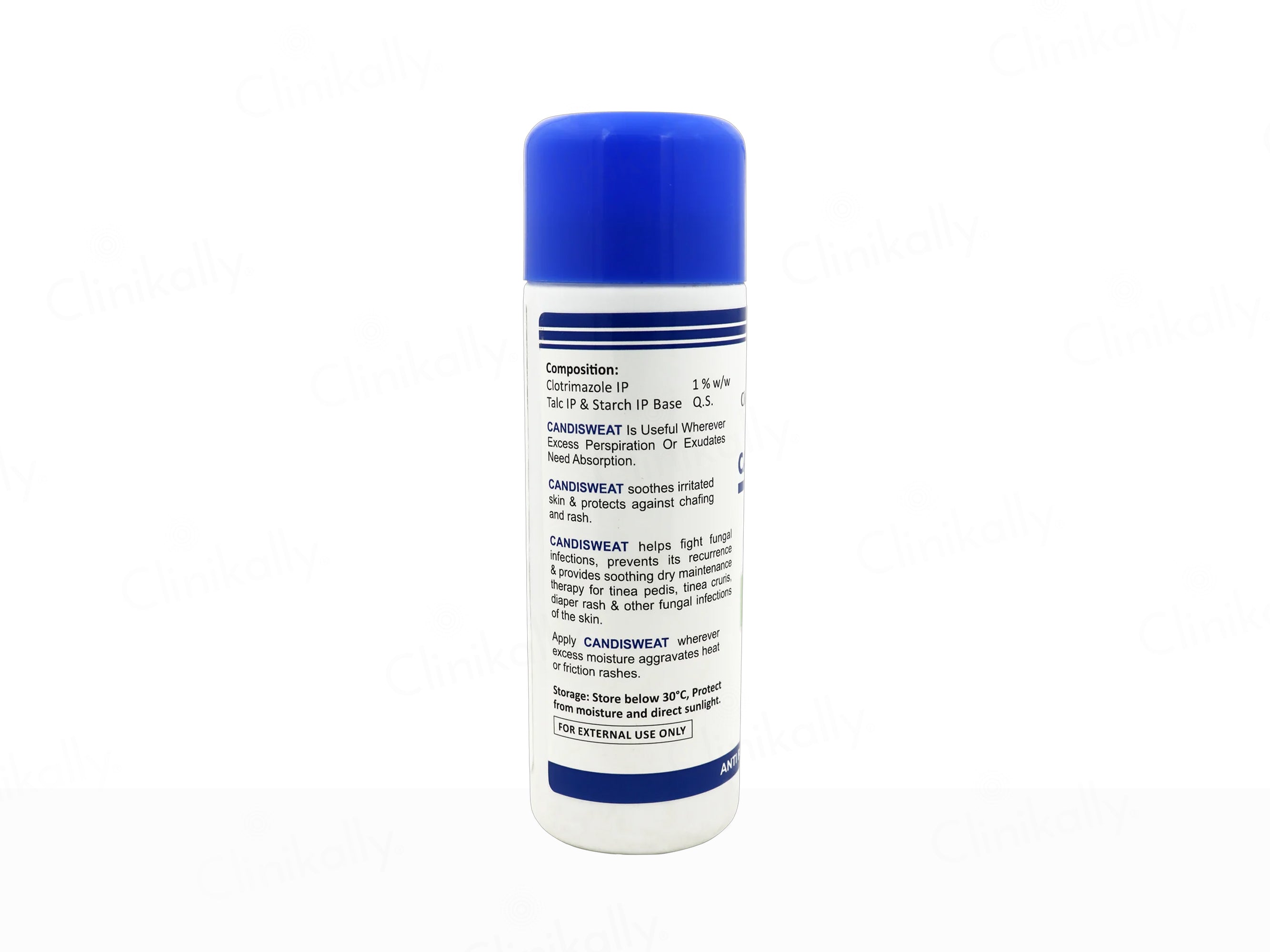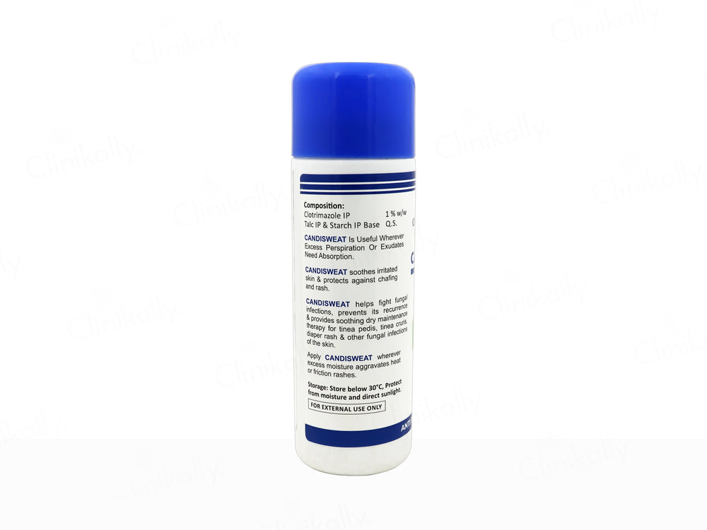 Candisweat Dusting Powder is an antifungal medication designed to manage various fungal skin infections, including athlete's foot, ringworm, jock itch, and other related conditions. Ideal for derma care, it inhibits the growth of fungi, providing relief from itching, redness, and other symptoms. This powder also helps prevent fungal infections caused by sweat and moisture accumulation, particularly in areas like the waistline, underarms, inner thighs, and feet.