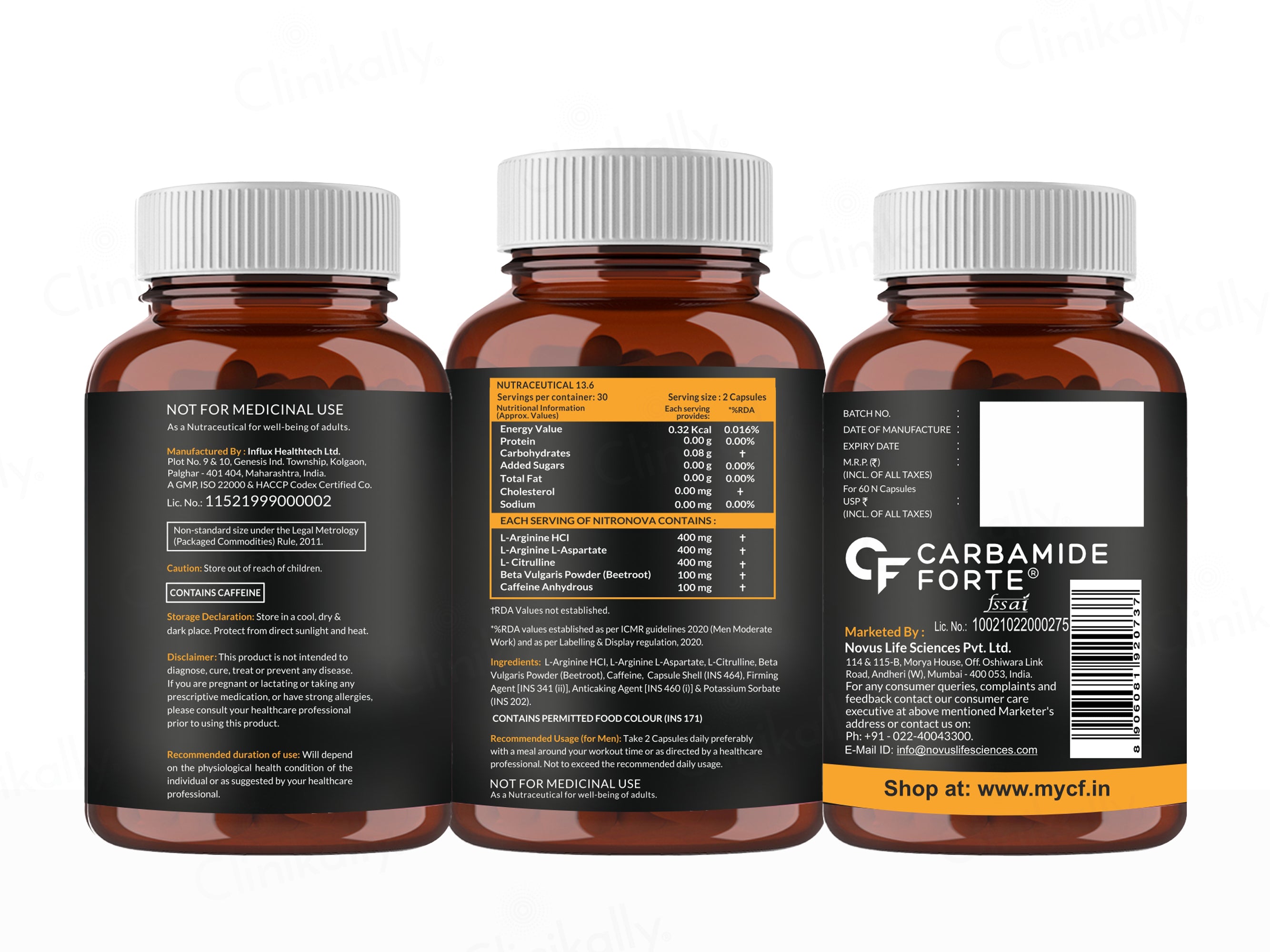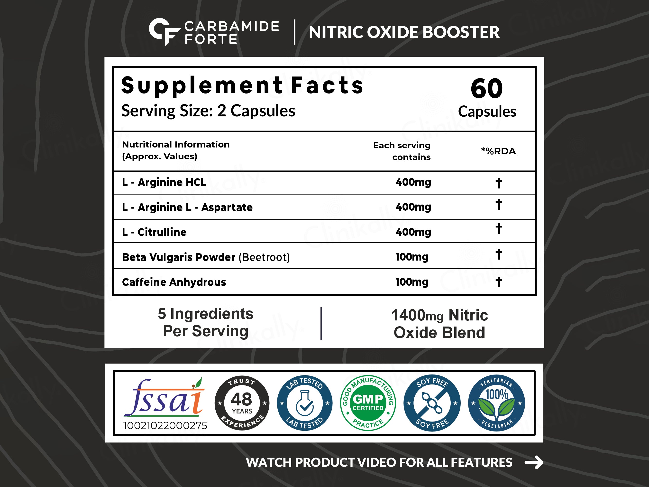 Carbamide Forte 1400mg Nitric Oxide Complex with L-Arginine HCl Capsules is designed to support your workout performance by improving blood flow and muscle pump. This powerful blend of L-Arginine HCL, L-Citrulline, and Beet Root Powder increases vascularity and endurance, delivering more oxygen to muscles for better performance. Ideal for those looking to boost their energy levels and muscle growth, it serves as an essential pre-workout supplement.