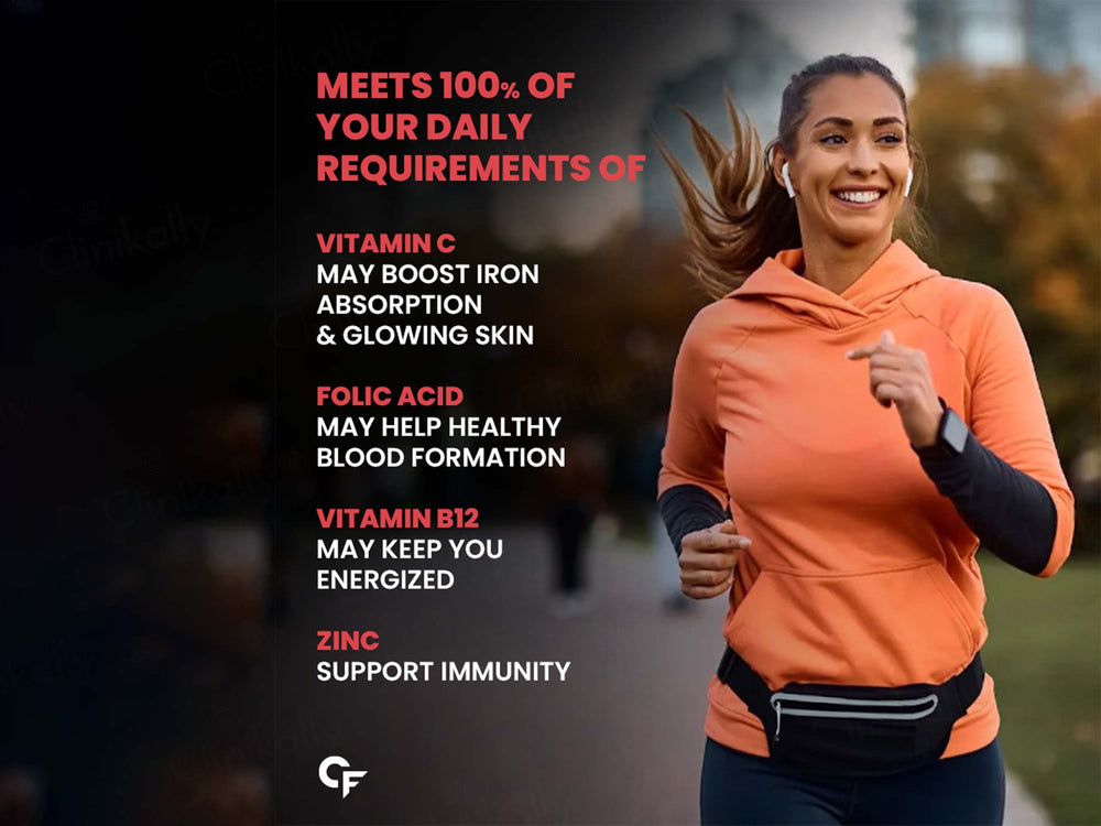 Carbamide Forte Chelated Iron+ Tablet For Women help combat fatigue by increasing hemoglobin levels in the blood, which improves the oxygen-carrying capacity of the blood. Enhanced oxygen delivery to cells and tissues throughout the body increases energy levels and reduces feelings of tiredness and weakness associated with iron deficiency.