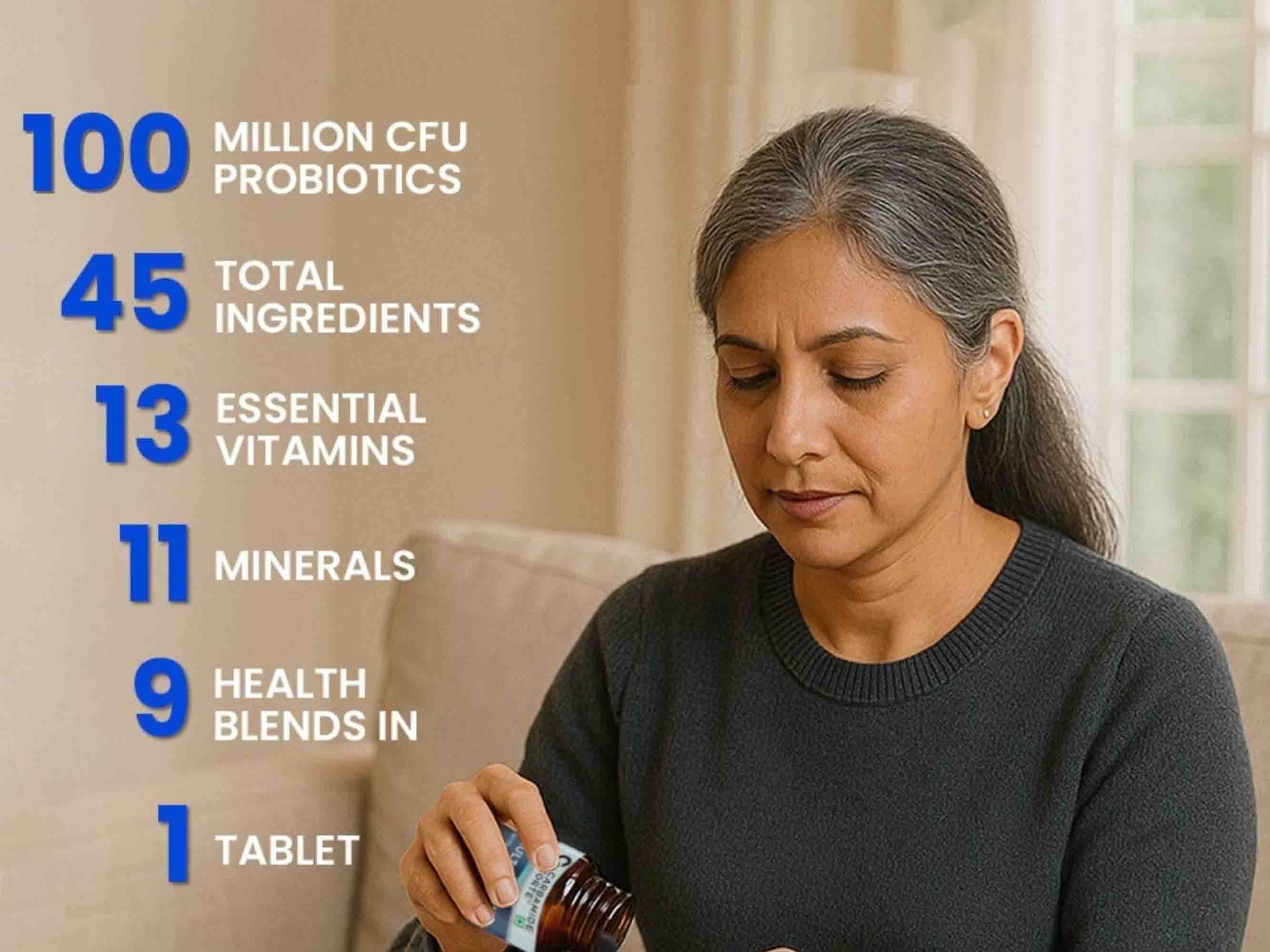 Carbamide Forte Multivitamin With Probiotics & Ginseng + Salmon Fish Oil 1000mg Combo Pack For Men is a dietary supplement designed to enhance energy, boost immunity, and support overall health with a comprehensive formula tailored for menโs wellness. Enriched with 40+ key ingredients including Ginseng Extract, Probiotics, Multivitamins, Omega-3 (EPA & DHA) from Salmon Fish Oil, Vitamin D, and Zinc, it promotes vitality, improves digestion, strengthens bones, and supports heart and brain health, delivering visible results with daily use. The vegetarian-friendly combo pack combines a multivitamin tablet and fish oil softgel, offering convenience and effectiveness when taken as directed.