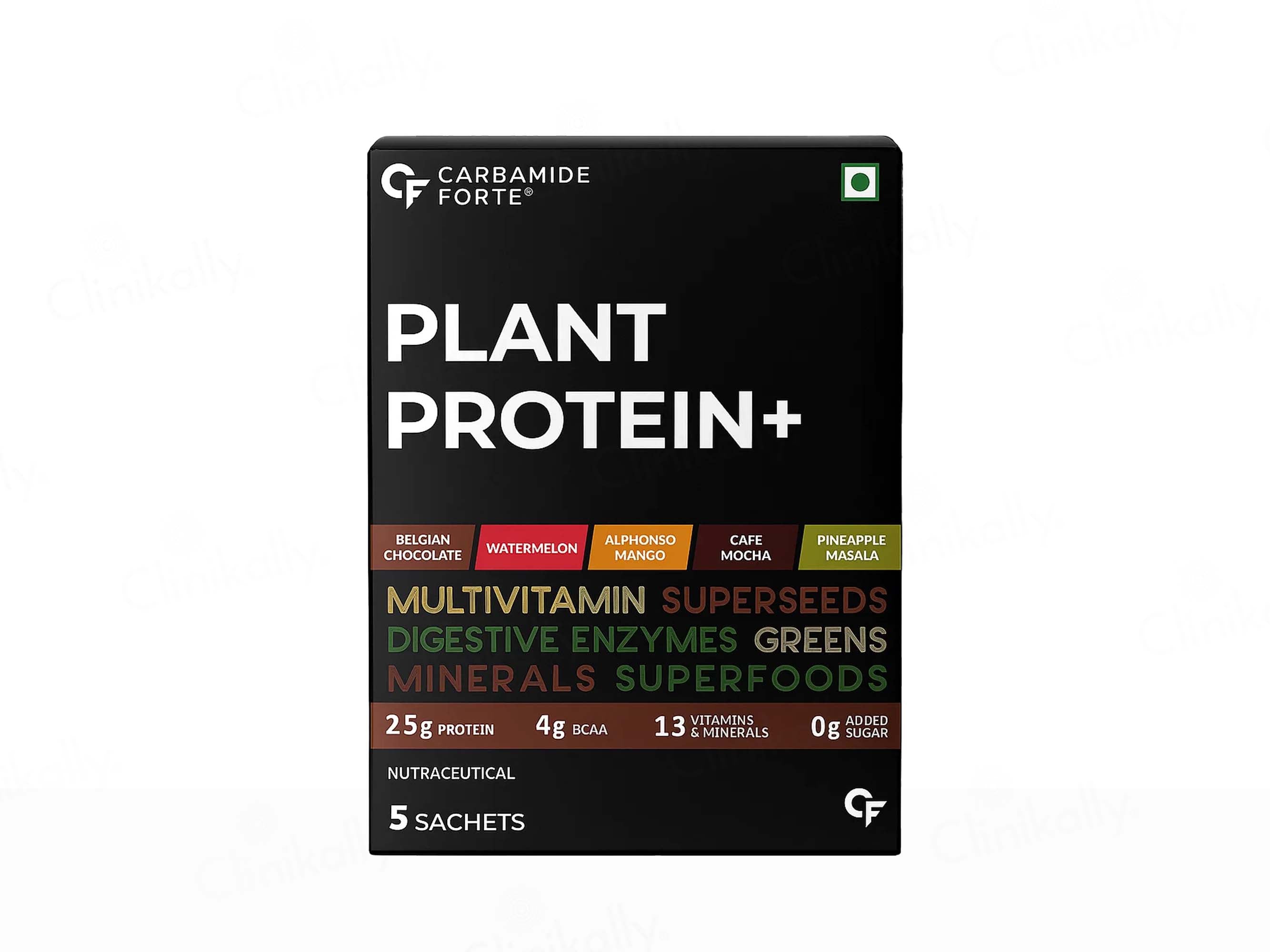 Carbamide Forte Plant Protein + Nutraceutical Sachet is a dietary supplement designed to support muscle growth, enhance post-workout recovery, and provide essential nutrients with a plant-based formula suitable for men and women. Enriched with 25g of Pea Protein Isolate, Brown Rice Protein, 13 Multivitamins, Minerals, Digestive Enzymes, and Superfoods like Spirulina and Wheatgrass, it boosts lean muscle development, reduces fatigue, and aids digestion without bloating, delivering visible results with daily use. The convenient sachet format offers a tasty, easy-to-mix option, ideal for fitness enthusiasts when consumed as directed.