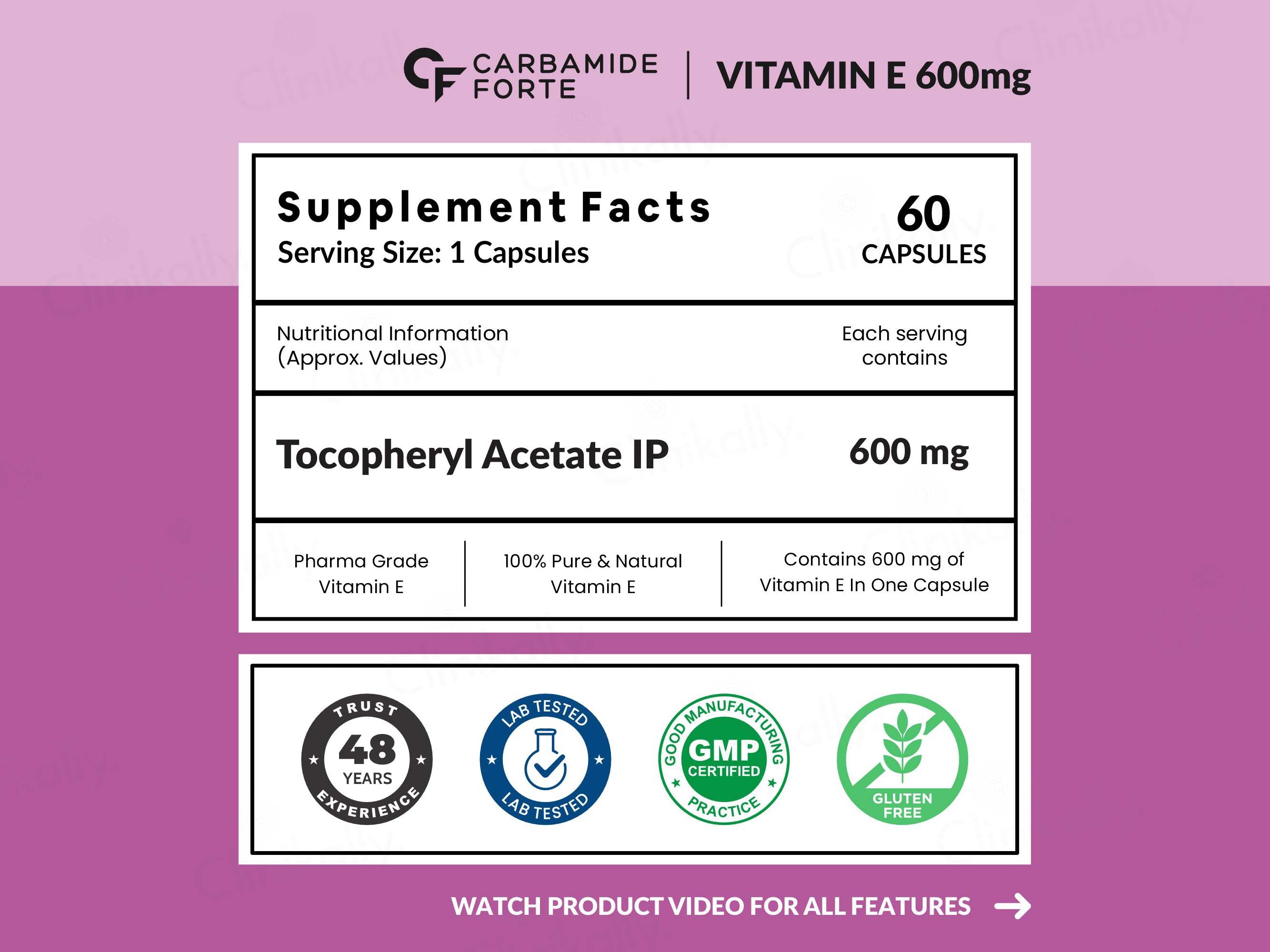 Carbamide Forte Vitamin E 600mg Capsule can be taken with or without food. However, taking them with a meal, especially one that contains fat, may improve absorption, as vitamin E is a fat-soluble vitamin.