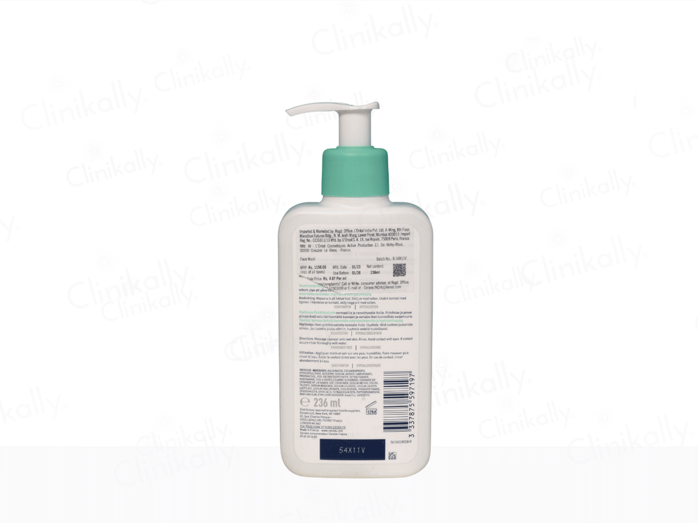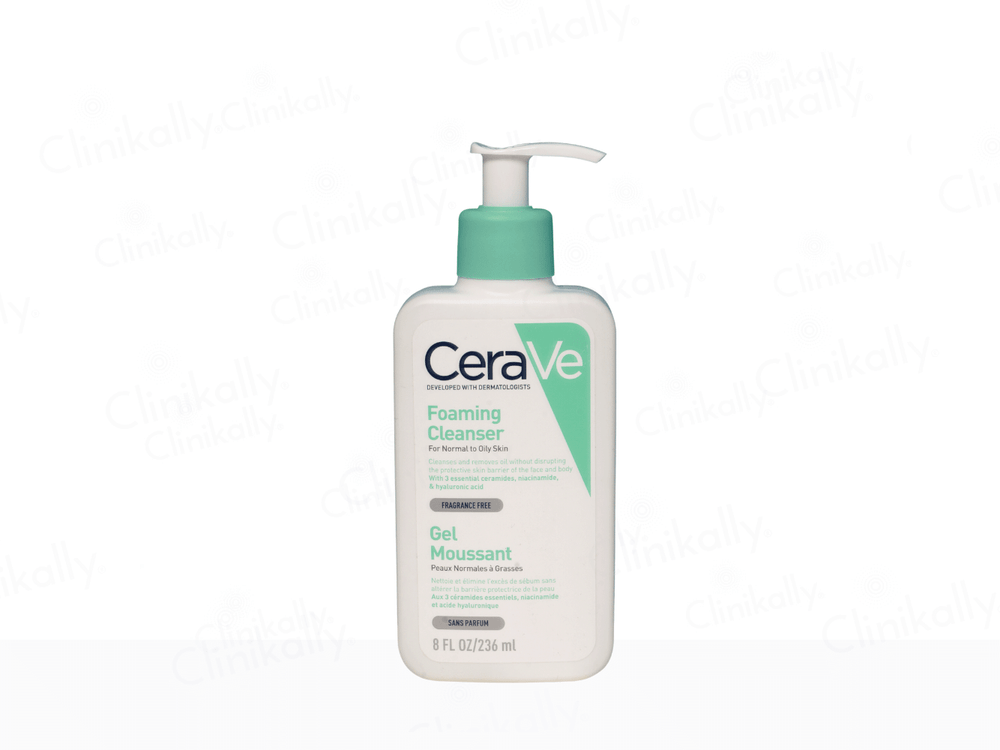 CeraVe Foaming Cleanser is a dermatologist-developed face wash for normal to oily skin, designed to cleanse deeply without disrupting the skinโs natural barrier. Infused with three essential ceramides, niacinamide, and hyaluronic acid, this gentle foaming formula removes dirt, oil, and impurities while keeping the skin hydrated and balanced. Its fragrance-free, non-comedogenic, and pH-balanced formula makes it ideal for daily use on sensitive and acne-prone skin. CeraVe Foaming Cleanser leaves your skin feeling refreshed, clean, and healthy without tightness or dryness.