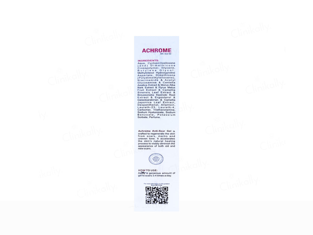 Ceuticoz Achrome Anti-Scar Gel is a specialized treatment designed to reduce the appearance of scars and improve skin texture, infused with silicone, allantoin, and botanical extracts.